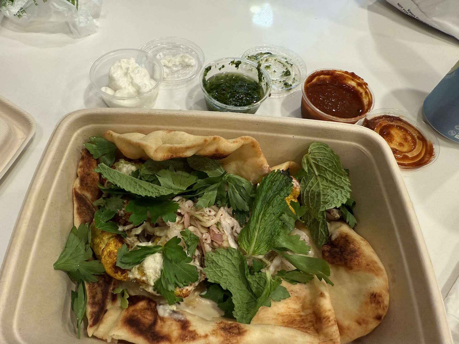 Now the rest: I went there with my fiance, who ordered from one of the other restaurants who had sold their recipes to this ghost kitchen, after spending 15 minutes going from restaurant to restaurant on the app, selecting food to order, and then being told that it turns out they didn't have the ingredients to make the meal. It was an awful app that created major friction just to ordering the food.