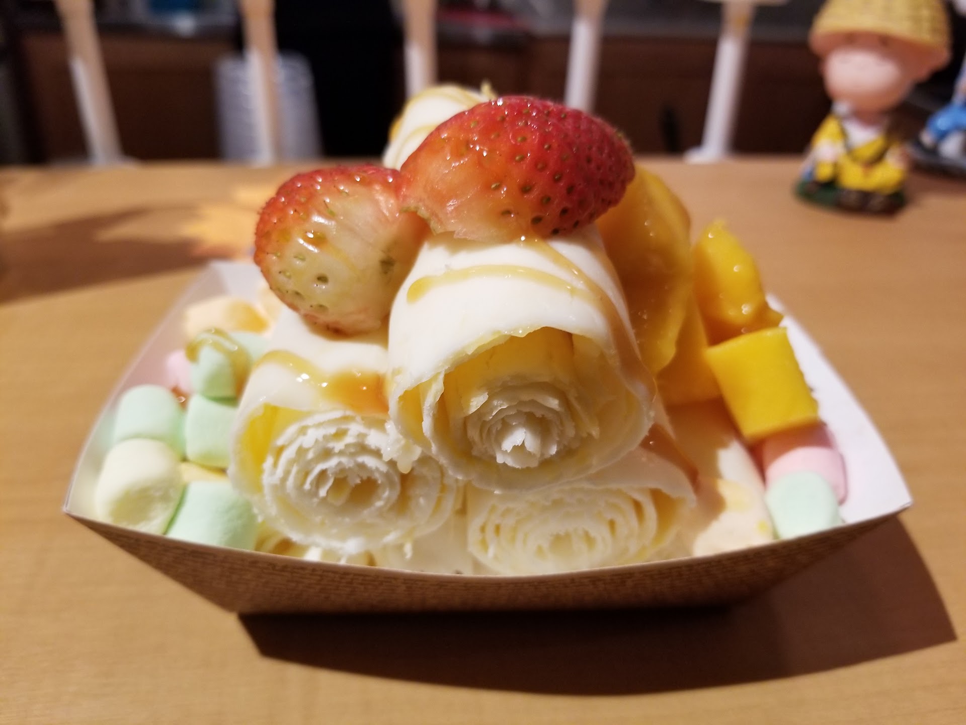 Read moreNever had Thai Rolled Ice Cream before but its a pretty involved process and was cool to watch. Why go to Thailand for the ice cream when its right here in Ardmore. I got cookies and cream with oreos and chocolate chips. My chocolate chips ended up being white chocolate but in my experience traveling there have always been small miscommunications and I ended up liking the experience even more. It made my wife and I feel like we were out and about traveling all over again. Its authentic and we appreciated that. The process requires smoothing, chopping and scraping off of an iced pan. It was very cool to watch and its not something that could be bought in a store or done at home. Totally recommend to try. Pictured is the...