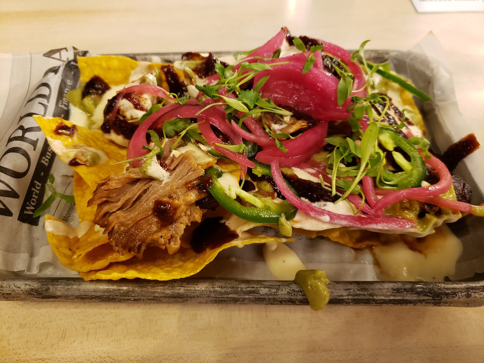 The food and flavors here are very good. We had a great appetizer with the beet chip fondue (delicious), then for our main dishes I got the enchiladas and my wife got the pulled pork sandwich. The food was delicious, (although the acidity of my dish gave me some stomach discomfort later.)