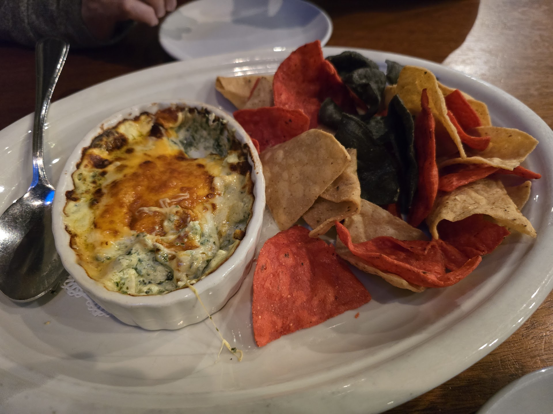 We had a party of four. The hostess sat us right away which was great, but we then waited 10+ minutes for a server to come to our table or acknowledge us. Finally, a young girl introduced herself and asked for our drink order. Two of our party ordered IPA beers and two of us ordered water only. The server had to come back to our table 3 times to let us know that the beer that was asked for was out, which whatever, but this took another 10+ minutes and each of those times she came back empty handed. I'd assume she could have at least brought the waters, right? At this point I was just irritated and hungry. Dinner rolls and garlic bread were brought out, which was delicious. Our apps were brought out nice and hot. I ordered the crab and spinach dip but was quite disappointed because I tasted absolutely no crab whatsoever and it was served with tortilla chips. I guess I should've looked a little closer at the menu because usually hot crab dips/spinach dips are served with a type of bread or soft pretzel bite. Oh well, my mistake, but again, I was already irritated so a fair judgement is... it was good. The main meals were much better. Huge serving size, tasty and fresh. I had The Rachael sandwich, my group had chicken Parmesan, chicken Alfredo, and a specialty burger. Everyone was happy with their main meal. Then while deciding on desserts to take home, a party member found a fly in their water. Honestly, I know these things happen and are out of our control. What was upsetting was when the server brought him a replacement water, she also left the "fly water" on the table in front of him. Pretty gross. So, writing this the next day with time to calm down, the food was good, the atmosphere was actually fun and lively, but we will not be coming back. Last night was our first time eating at this restaurant and the first impression was pretty...