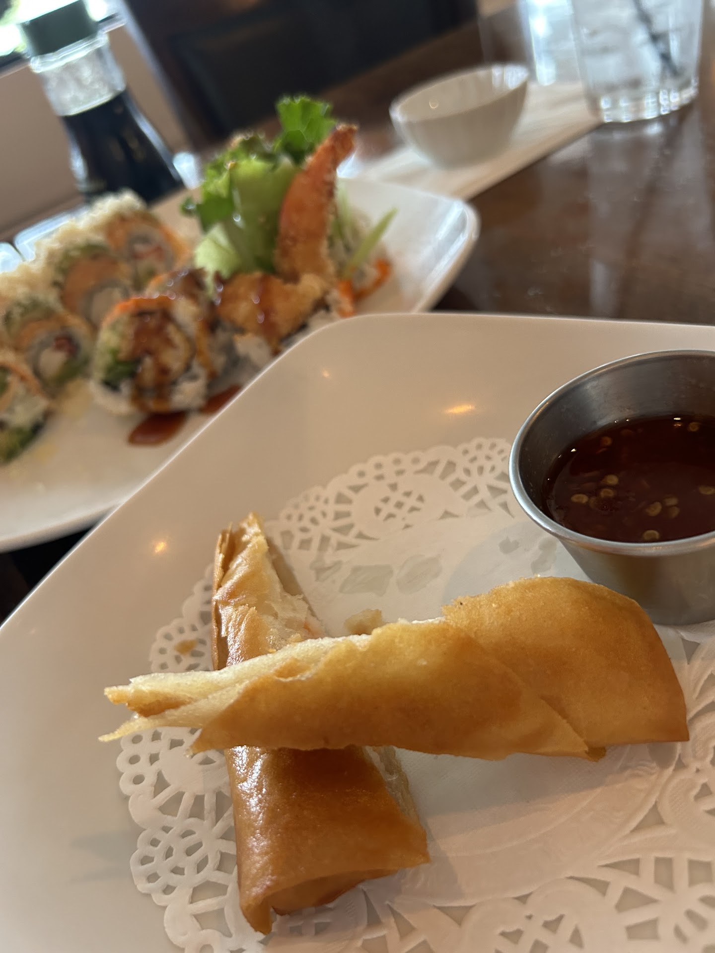 Read moreTERRIBLE…. My honest review. It was a rainy Tuesday afternoon, decided to go here with my husband. I based it off the reviews, DO NOT trust the reviews. This place had a horrible smell, smelt like burnt cat or carpet or something. This made me nauseas. We ordered 3 rolls, the TNT roll, the Miso roll, and the Shrimp Tempura roll. We also got an appetizer, the Maryland Spring roll. The spring roll was good, nice and hot. But the other 3 rolls were disgusting. Seaweed was old, and chewy. Burnt my mouth, and horrible fishy taste. We actually felt sick leaving the place, I’m glad we only got 3 rolls. We threw away most of it. Worst $52 I’ve ever spent. I repeat, don’t believe the reviews, please go to another place 🙏🏼 I eat sushi everywhere I go, worst place by far… OH and I thought I should mention, the restaurant is a house. Definitely false...