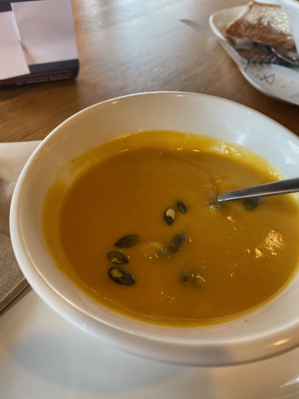 Read moreReally enjoyed Panera Bread and the quality of the food they prepare. It has been awhile since I was here so I had no idea what had changed. We had a bowl of their clam chowder, which was hot and tasty. Served with a piece of French baguette...delicious. Served on Fridays. There are other soups too available on certain days. We had two of their sandwiches...Roasted Turkey and cheddar with apple slaw on cranberry walnut bread and their Bacon Turkey Bravo with their signature sauce on their tomato basil bread. Both sandwiches were fresh and tasty. You can customize your sandwich if you wish.There is quite a selection of salads, bread bowls,sandwiches and soups,bakery items and beverages. They also serve breakfast. They have a drive through but be prepared to wait as they prepare each one fresh. We found their decor inviting and clean. They have computer ordering and I believe you can also order at the counter. All in all, a great experience,and we will return. It is great to have a place to eat where they serve good...