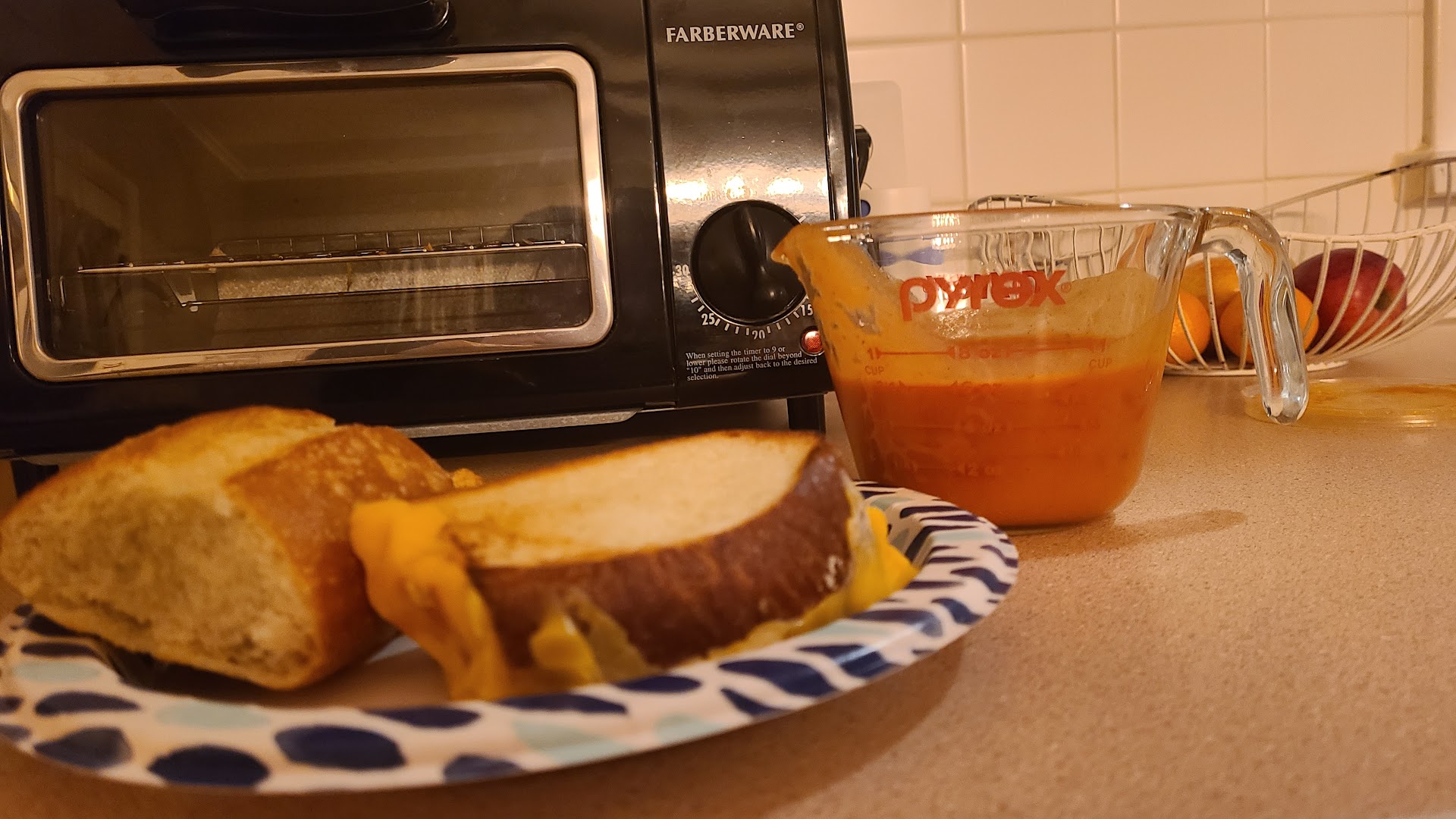 Read moreFirst of all, to be fair, I'm not a huge Panera fan. My wife luvs it but I think it's typically over priced. That being said, I usually go along for the ride and order something when she wants food from Panera. 9 times out of 10, I get a grilled cheese and tomato soup. Easy enuf. Food is always good but portions continue to diminish while prices go the other way. Got the pick 2 tonight, to go, and this what I came home to. I really could care less that my soup was 2 ounces short of a 'cup' (8 ozs for those who don't know) but the grilled cheese is about the size of a 1/4 slice of bread. I only included the measuring cup in there as a reference for sandwich size. Salt on the wound was the bag of 6 total croutons for the soup. One silver lining is if I'm really hungry for plain bread, I'm set with a hunk of baguette.