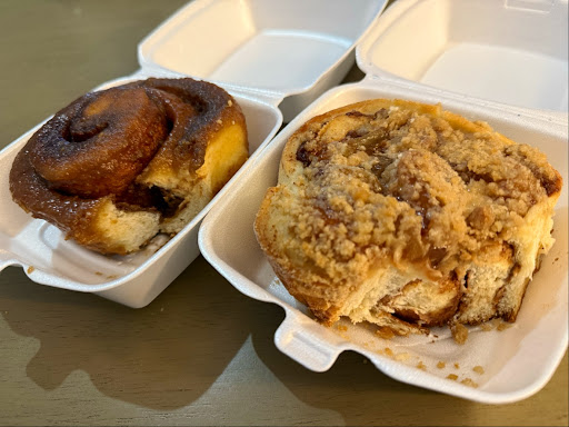 Walked in to this establishment with high hopes. Heard great thing about cinnamon rolls and sticky buns. There was a large amount of people coming in and out to do to go orders. Which i was hoping that the food was good. We were greeted by a sweet gentleman behind the counter. He was very friendly and attentive with our order. It came out to being just over twenty with some breakfast sandwiches and cinnamon rolls plus two drinks. We waited for our order when it was up we weren't told but luckily my friend was watching and we got it. Up to this point they had a 4 star rating with service and the price of the food. But than we got to the food and drink. I bit into my bacon sandwich had a nice crunch but was just super dry. Def need some kind of condiments on it. The raspberry tea wasn't bad at all had a ok flavor to it. Not overwhelming taste but just enough to know raspberry was there. Now to main attraction the roll. Put some frosting and cut it up. And shared it. Had a okay flavor at first but the more I ate it had a unnatural chemical taste to it. Threw some of it away. We got up to leave again the guy behind the counter kindly told us to have a nice day as we left. The customer service and thr prices are for sure the mvps of this establishment. The sandwich is basically an easy fix with some type of condiments. And the cinnamon roll maybe we just got old or just bad batch. Not sure. The tea wasn't bad. So if you want good service, cheap prices and semi good food this is place for you. I feel like this may not be the place for us. Wish them best and say if your in try and see if its...