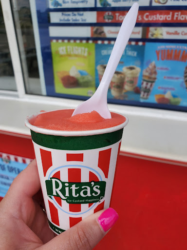 Read moreThe best water ice! For those unsure what "water ice" is: it's basically a water - based frozen treat. Similar to sorbet or sherbet - but no milk in it. Rita's is kind of gormet. We're other "Italian water ice" is of the same consistency, it tends to be fruit flavored sugar water that is frozen. Rita's has actual fruit pieces in it. Cherry has little bits of cherry mixed in with it, lemon has bits of lemon and zest in it.