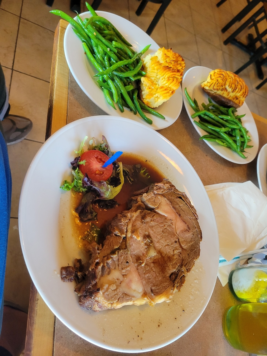 I think our waitress was newish, because she didn't know what came with the filet mignon, which is what I ordered, and when I said the menu said it came with onion rings she didn't realize that. I think she said she was new, but it was hard to hear her with all the plates crashing in the background.