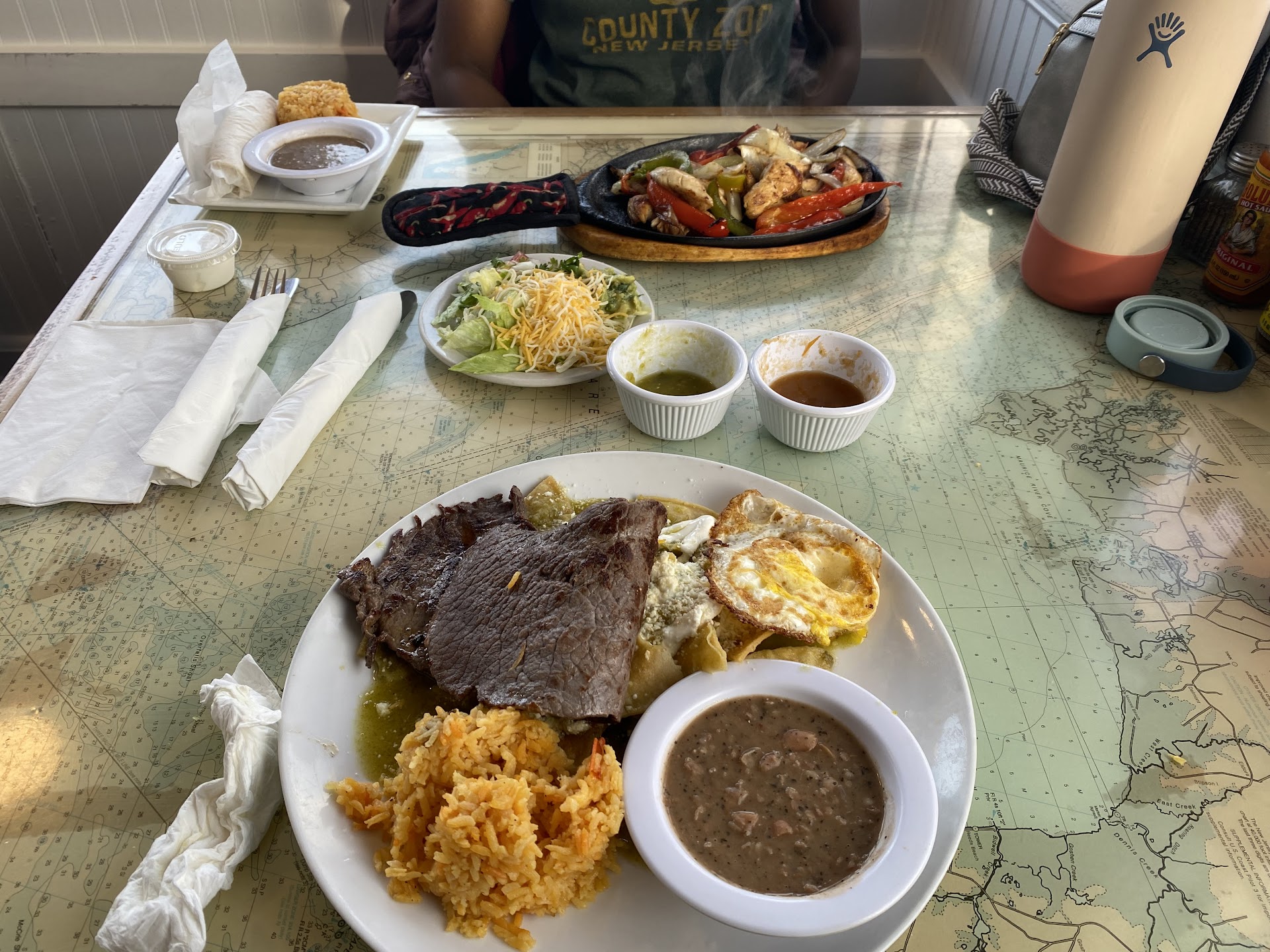 Read moreSaturday, 9/28: Nobody else in the place when we got there. There were 11 of us. I got a combo: chimi, sope, flauta, SD rice n beans. Asked for cream of beans w/flour torts as app to share with others. The green and red sauce served with chips had no flavor and tasted old like the stale chips. Only the red was at least somewhat hot spicy, still no flavor. The flauta and rice on the main dish were ok but shell was too well fried. The sope was more mediocre in flavor. The chimi was too well fried and inedible, the meat tasted like it went through a bucket of cleaning solution, sauce no flavor. The beans were absolutely horrible too, they tasted something like the inside of the chimi. The cream of beans were mediocre; perhaps the cheese helped cover the blandness or whatevery was in the sidea of beans. Worst food I've eaten out ever in 40 years, second to the all you can eat feeding trough chains. And the service was not far from that, worst! The young women wasn't too interested in a good tip. She was found sitting at the front on het cell phone each time someone had to get up to ask for something. From the beginning, we had to keep asking for cups, glasses for wine, water, ice and she never checked back on us. Everyone got there food except one person, at this point she was told they didn't have chili rellenos. So, she had to wait. There was a max of 3 other tables at once and one other server. The one and only thing they had going for them was presentation. Extemely...