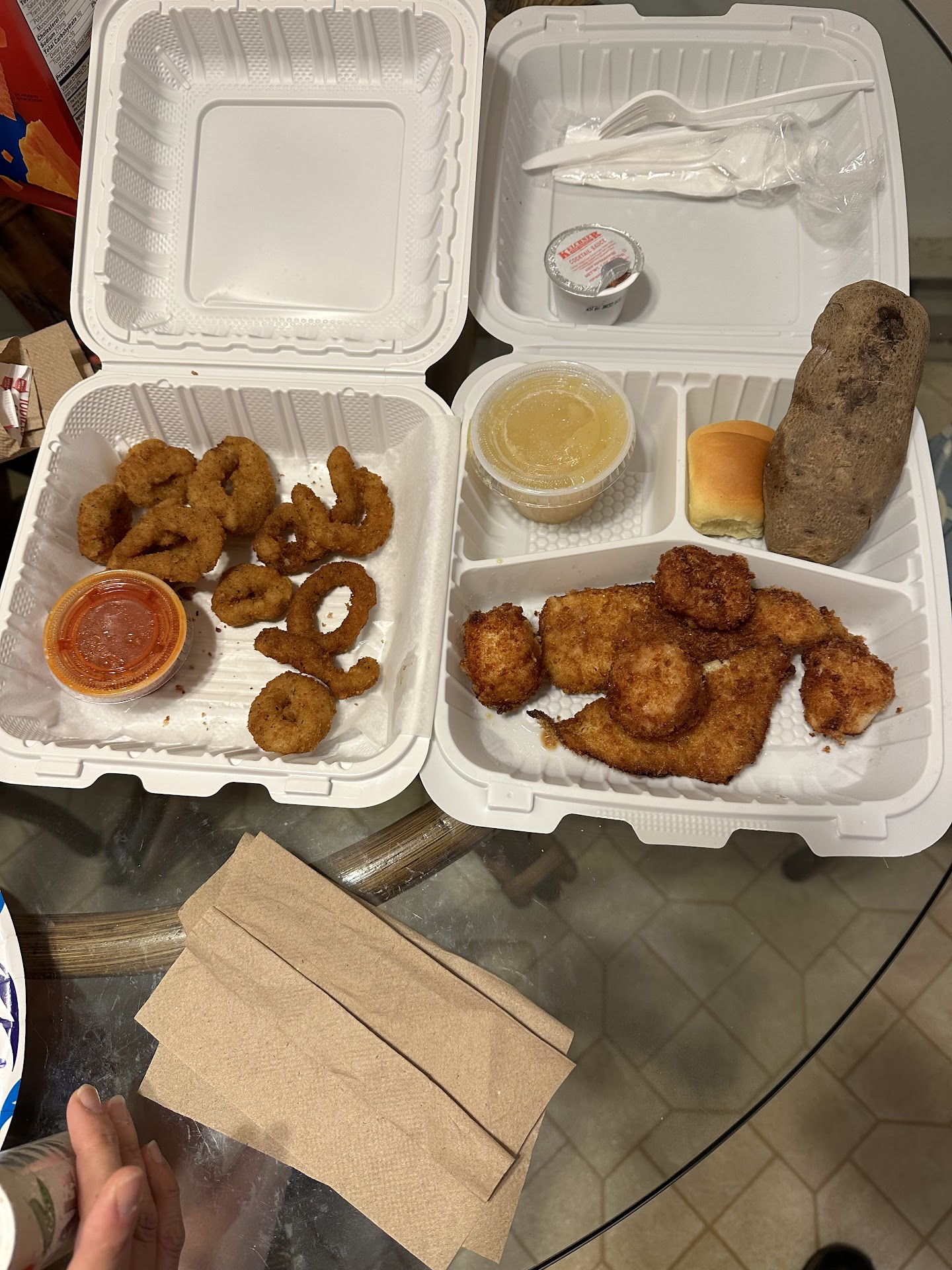 Family and I have been coming here for years..Great seafood and prices. Only reason I did not give 5 stars is bc the sides are disappointing,fries have a coating on them and are soggy, Mac n cheese is bland. Just would like to see more variety for sides or at least do the few that are on the menu well. Simple fix though, since the seafood is great we stopped ordering the platters and buy the seafood buy the pound. Crabcakes are the best and I love the fried grouper.**Followup to last review. In retrospect, at least another star should've been added so I did on this followup review. I think it was nice the owner addresses things on here and let me know about other options if I wish.I got the special,fried local platter yesterday and decided to give the sides a try again. Got the baked potato,was good as usual and the macaroni salad which I did enjoy this time around.The seafood as it should be was the star,perfectly cooked as always. In the approximately 10 years we have been coming here I must say it's nice that the food quality is still excellent and prices stayed good, service is always friendly. Some recommendations: Seafood Saute is such a huge portion and filled with seafood,Chicken parm is excellent, I sometimes ask for my scallops blackened-they are amazing. Corn fritters are so good...
