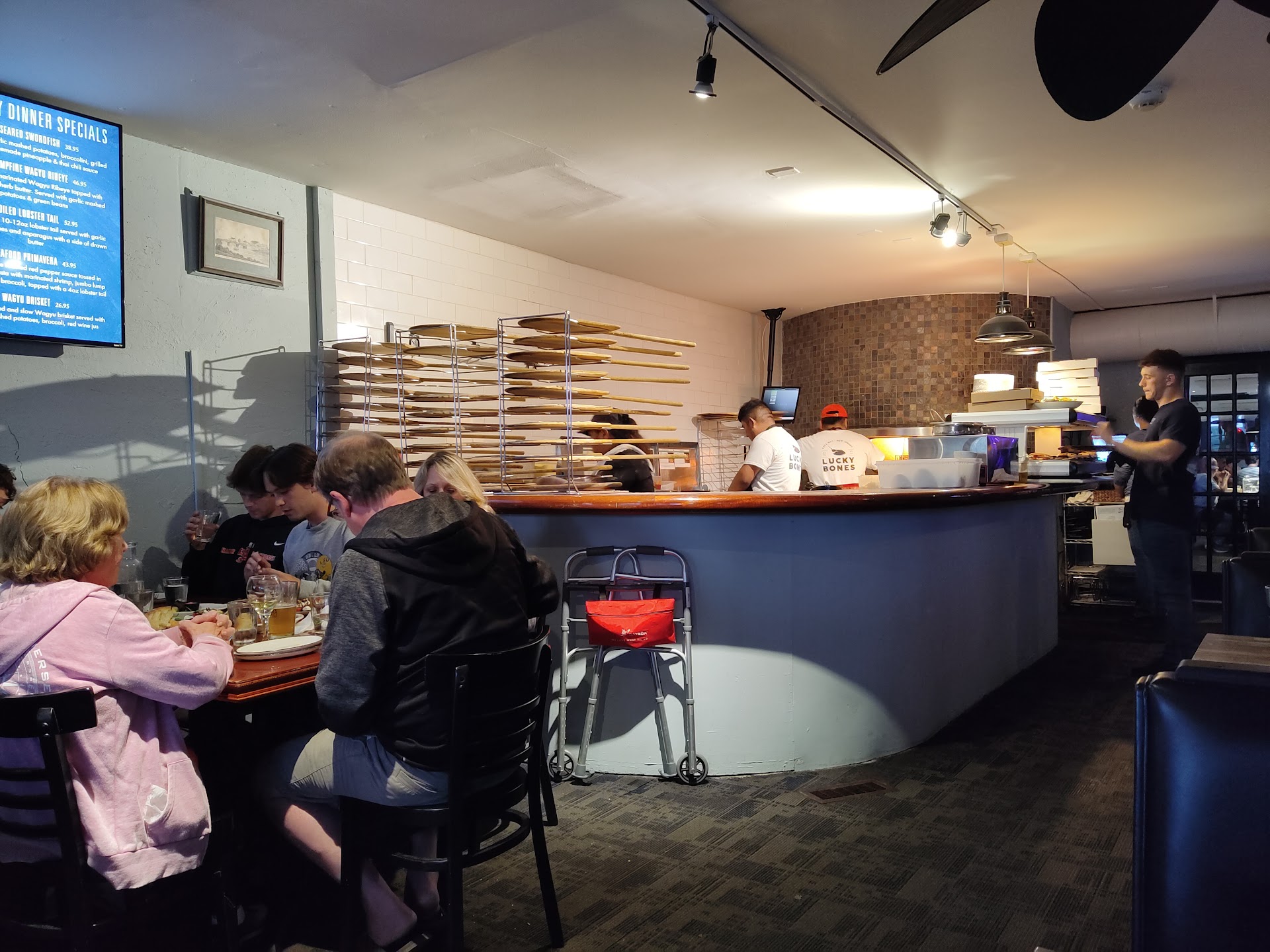 Read moreNormally I don't give a 3-star when I have visited a restaurant once and know I won't pass this way again. But after thinking about it, the 3-star had to do with the food, not the service or the ambiance. My husband said he'd like a burger today after we've been on a fish/seafood odessey in three states including New Jersey. So I looked it up and we chose Lucky Bones. My husband had the daily smash burger offering. I chose the Summer Salad on the daily special for 7/15. I had the option to order a protein and I decided to add the shrimp salad option. I also ordered the bread service with olive oil for an additional fee. Here's why it was a 3-star experience: My husband's burger was so high (the bun was big) he had to eat it in a deconstructed manner. The meat was overcooked, dry and not good. He didn't order it a specific way, but how do you overcook smashburger patties. He didn't complain but I could tell he wasn't enjoying and he didn't want to have the kitchen start over. He felt the french fries were too greasy. I disagreed with him on the French fries. They are hand cut with the skin still on, and I liked them. Here was the problem with salad...it was described as "spring mix" with avocado, strawberries, fresh mozzarella, and toasted pine nuts. I chose the balsamic dressing on the side. Fortunately our server noticed the kitchen put pure balsamic vinegar in the little cup. She whisked it away and brught the proper dressing. But the salad was ALL arugula greens and nothing else. If I had to pick a lettuce which is my least favorite, it would be arugula. If you are having daily special saying it is spriing mix, wouldn't you think the kitchen would tell the servers that there is a change in one of the the daily special and then when it is ordered, she could have advised me. I'd have changed my order if I had been told it was going to be an arugula salad. The shrimp salad was just meh..,wasn't bad, just so so. I'd have opted not to add this $12.00 addition to my bill. And last but not least, one of the food runners is a young man with nearly shoulder length curly hair. While he had a baseball cap on, it is not in our opinion, a good idea not to have it tied back. And no, we did NOT have hair in our food. We're just saying it was a little off putting. And this place was pretty expensive lunch actually. With tip we paid $76.00. Burger of the day, salad with the additional serving of the shrimp salad, two soft drinks...