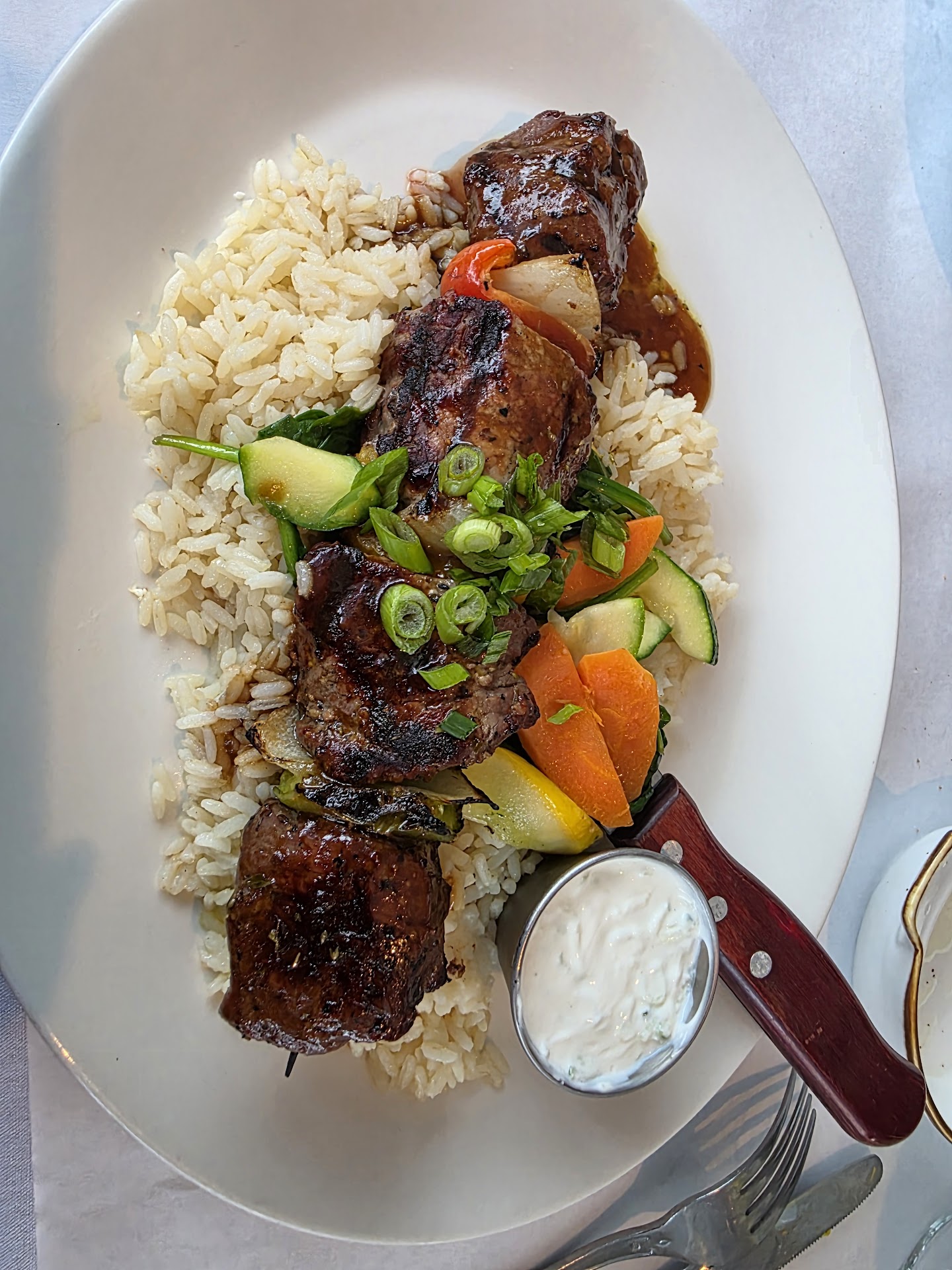 I've wanted to get to Olive Branch for quite a while and we finally made it. We had a delicious meal, with nicely attentive and family-friendly service, in a lovely bright little dining room. Every aspect of the menu was appealing. The dinner bread (semolina from a NY bakery, we were told) with table EVOO were perfect. The Chop Chop Greek Salad was so fresh and crisp! Appetizer chicken wings with carmelized onions on top were flash fried goodies. We enjoyed our entrees (shrimp and filet mignon kabob). We saved room for dessert (and took a lot of leftovers home to enjoy later). Baklava and rice pudding was the chef's kiss on the evening. The restaurant is BYOB (did we miss that in the Google listing or website?), so we will be better prepared next time with a convenient stop across the street at the liquor store). The only word of warning is to those who may be very sensitive to temperature changes and A/C. I was VERY cold all through the evening, (with a short sleaved dress, a light sweater and my napkin as a tiny blanket on my lap). But that is my ONLY note for our very enjoyable dinner. We will be back to try the rest of the menu. Yum! This is a gastronomic oasis in...