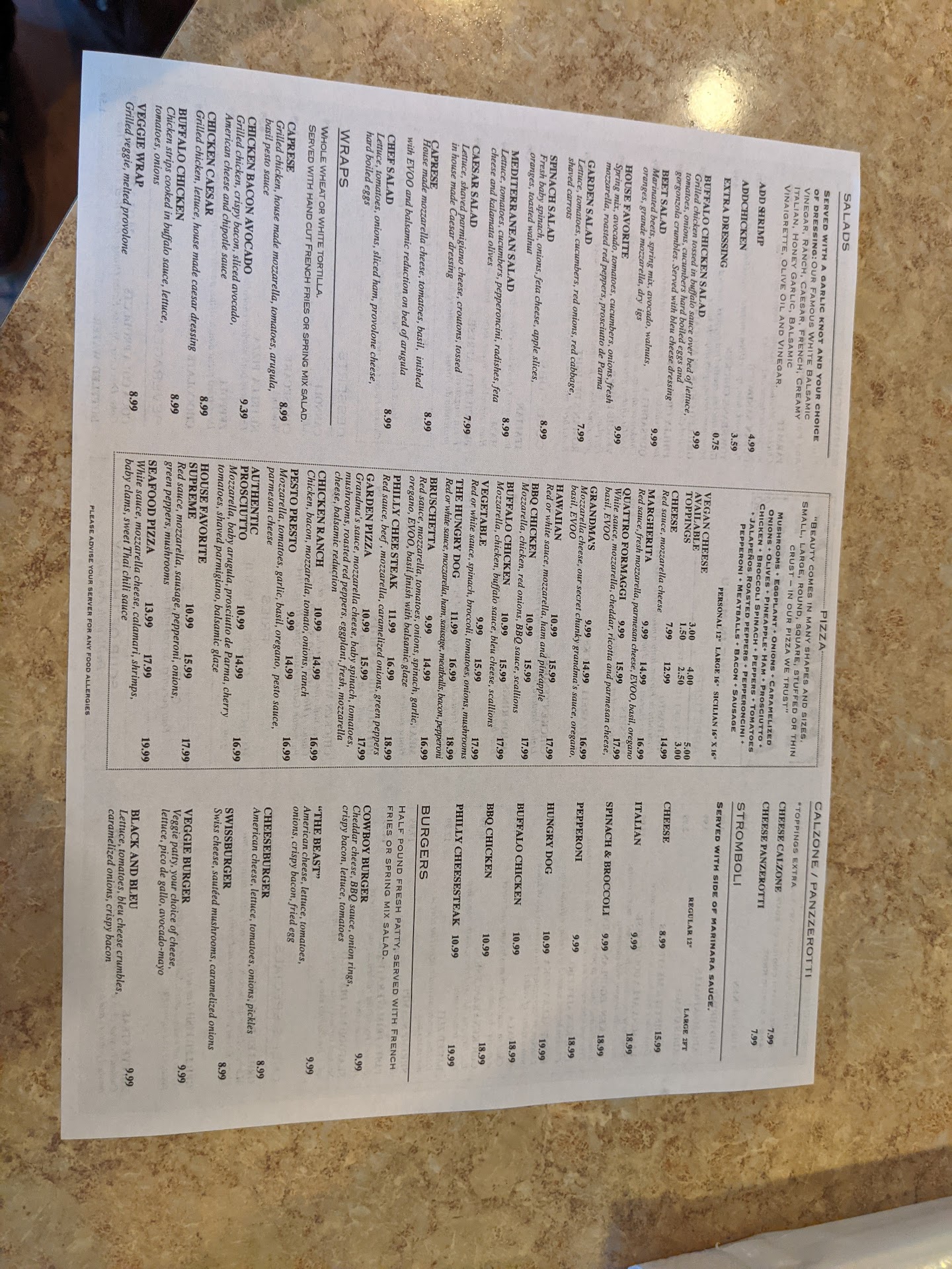 Read moreWas really hoping to like this place. We went Saturday night around 8:15 pm. Wasn't too busy when we got there. Waitress was very nice kinda felt bad for her since she was the only one on the floor and was running around like crazy. Ordered a large pie 1/2 pepperoni, wings (asked for them to be cooked well done), and an order of fries, food came out really quick. Really disappointed, the pizza was not cooked long enough, sauce was very watery, crust soggy, so everything just fell off the pizza. The wings that I asked to be cooked well done weren't they were also soggy not crisp. I was waiting for the waitress to come back to ask her if they could cook it a little more, but she wasn't anywhere to be found. We also weren't able to get a refill on our drinks since we didn't see her. Like I said, she was really doing everything in there, and I did feel bad for her. When she did come back to ask how everything was, I did tell her about the pizza and wings she said, "I'm sorry." Not sure of it was an off night or they were rushing everything because they were closing at 9:00 p.m. very...
