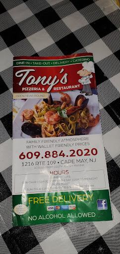 Read morePizza is Medium-large slice, Light on sauce, medium crust, slight flop at point, good for fold technique. Cheese has sharpness of an asiago, light mozzerela, not to stretchy. Bottom has nice brown with very slight flour dusting. Recommend topping with the dried oregano and/or parmesean. Inside there is plenty of clean seating for dining in or casual seating with view of the sports game while waiting for take out or grabbing a slice. Also has free delivery. This place is on the right after you cross the cape May bridge, across from the lobster house and after you pass Lucky bones. It is the same Tony's that ised to be at the little place next door. The same owners are still making the delicious pizza. Say hi to Ollie in the back kitchen, he...