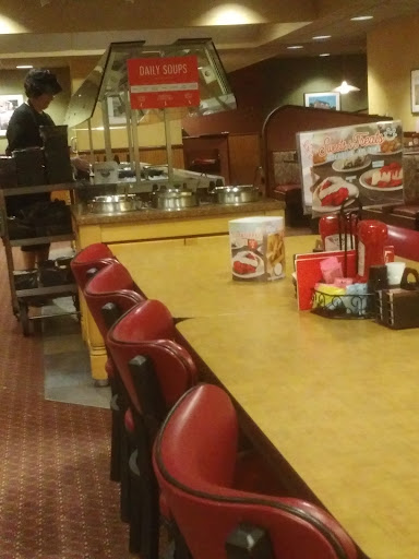 We come here a couple times a month as a way to spend time as a family. The menu isn't overwhelming, which is good, but the food is kind of sub par Diner food. We mainly enjoy the all you can eat salad bar. Wait staff is pretty friendly and cost is okay. The reason for my three stars rather than 4 today is I went at about 8:15 pm tonight and from what we could see there were about 7 tables occupied. Our waitress was sweet but being relied on by what seemed like every table even though we were all scattered in each section. 20 minutes passed before we got to put our order in and just as we were going to someone shut the salad bar lights off (while a mother and her son were making their plates. They questioned her and she said it was a quarter to and that's when they shut it down. The place doesn't close until 11 so why shut the salad bar 2 hrs early? Anyway my husband basically told the waitress we wouldn't order unless she had her keep the salad bar open for 30 min more. She agreed but getting additional lettuce and stuff was difficult and it was nearly empty and believe me 30 min on the nose the nasty lady was out there quickly pulling everything. My husband told her he was feeling a bit rushed and she pretty much said Oh Well. I'm told the one in Richland has it up all night so I guess we will be going...