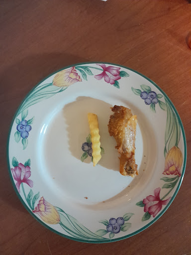 Read moreGot the chicken dinner special tonight. Both mine and my husband's drumsticks were the size of my thumb. We had a good laugh but in reality, not sure how they felt right deep frying a bone and serving to customers. I personally didn't feel right eating a newborn chicken, either. From...