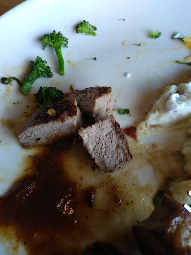 Read moreDefinately not the best visit tonite. When we arrived, we had to wait almost 2 minute to be greeted by the hostess. Then we waited 15 minutes for the server to arrive to take drink orders. We all ordered the salad, appetizer, entree for $12.99 - 15.99. 1 salad arrived with one server, then another salad arrived with a different server. 8 minutes later, the other 2 salads and 1 appetizer arrived with yet another server. 4 minutes later, 2 appetizers and 1 entree arrived...and we are still eating salads since they didnt all come out at the same time. Our waiter then brought 2 more entrees. The fourth entree finally arrived by yet another server 7 minutes later. My order was not exactly right - ordered 6 oz sirloin, medium and a loaded baked potato with everything on the side. Thr steak was actually med rare and everything was piled on top of the potato. Since our server was MIA, I just scraped off what I didnt want and ate the steak - good thing I am not totally adverse to med rare. Our server came around 1 time and brought me another water. After we had finished, some other guy came and said "Let me get the plates out of your way". Never asked if everything was alright or anything. I was taking care of the check, so I didnt see him till he was walking off. As we left, I noticed that he appeared to be the manager because he was wearing a black long sleeve button down shirt. Once we got outside, we noticed the parking lot lights were not on, neither were the outside building lights (time was 730 pm and quite dark). We had 2 elderly people with us, 1 of which has visual limitations and using a cane. I had my husband go back in and tell them the lights were not on. After several minutes, the lights were still not on, so he went back in to tell then again. The response from the host was "I told the manager, there isnt anything else I can do". Finally, after we got everyone to the car, the lights finally came on. I have a problem with a dark parking lot...too many trip hazards and curbs that are hard to see are dangerous for anyone, not just the elderly with...
