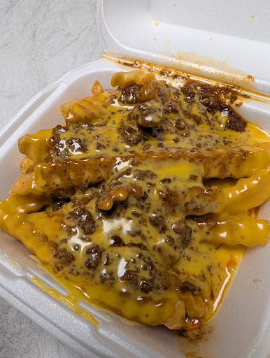 The food is consistently prepared with generous proportions. The hamburger patty actually tastes like beef and is still a 1/2" thick even after being cooked. It has always been juicy and delicious, not a dry one yet. The fries have a very light dusting of what tastes like the onion ring batter, which is delicious; whatever it may be, both get 2 thumbs up.