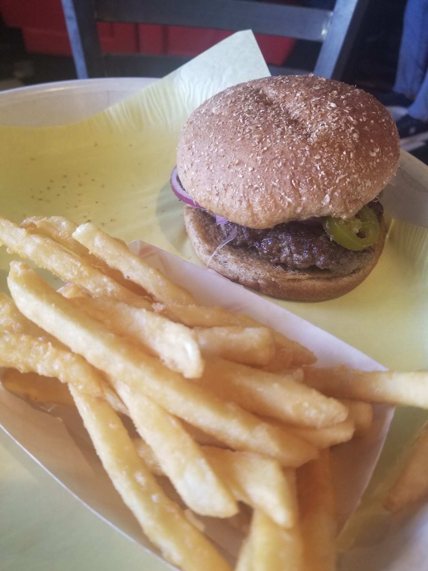 Read moreMan there is nothing worse than requesting a well done burger and ending up with raw in the middle. Place wasn't even busy and actually stated well at the register twice. I did not ask for a redo honestly the bushy headed cook that probably needed a hair net looked liked he could care less to be there. It was one of those times you pinch and eat what you can and move on. I did take the raw burger to the girl cooking the fries and showed her so maybe it wouldn't happen to the next. 30 bucks on two burger meals and a cheese stick isn't cheap. She asked me if i wanted it redone I said no. She told I guess was the manager who could have met me at the door and offered to refund my burger but didn't care to I guess. Meh I'm not one to cause a scene or complain in front of other guests. But I am one to not take my business back unfortunately and this use to he the burger it spot. Maybe they changed...