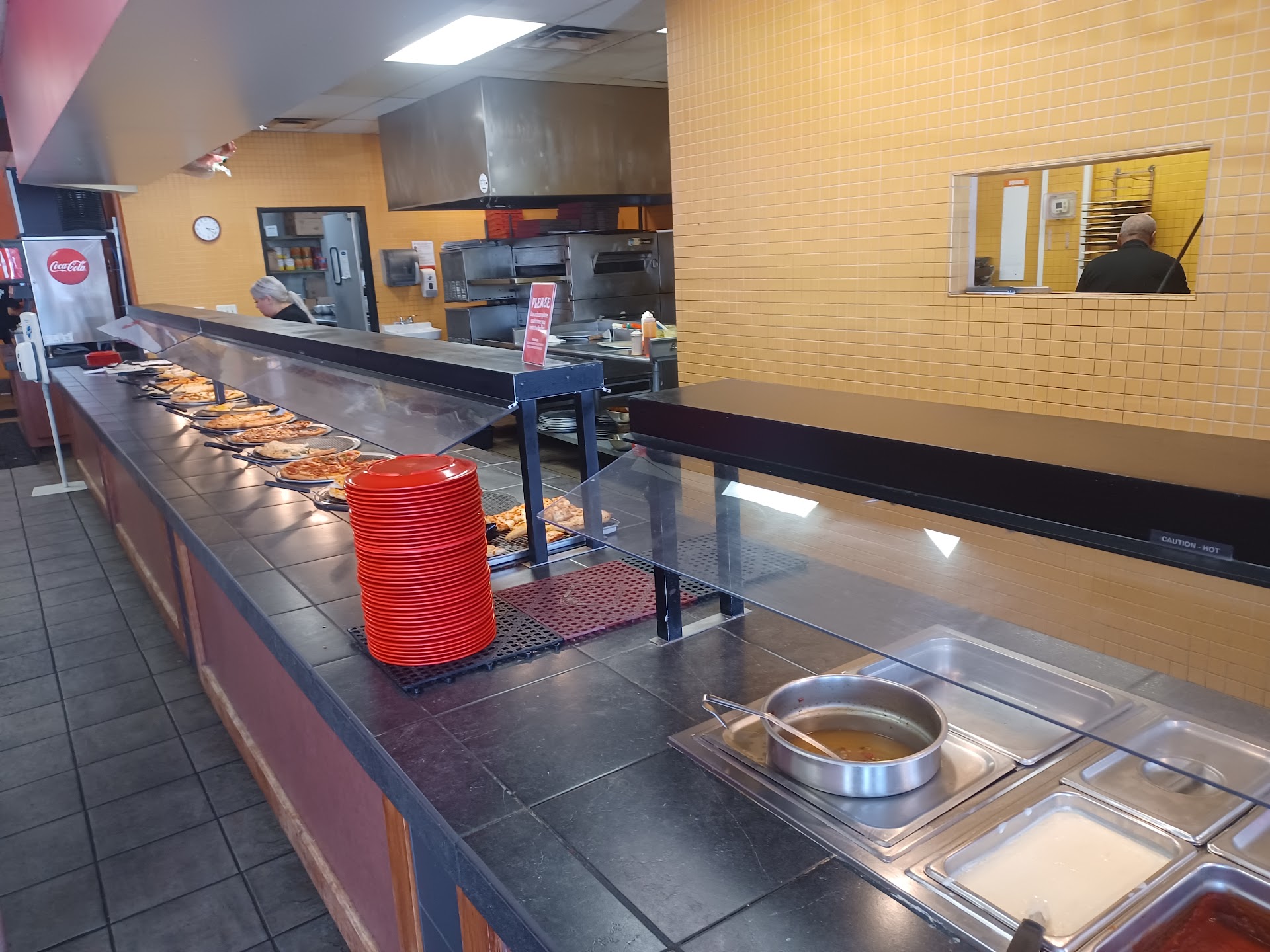 Update on Monday 9/4/23- not sure why we decided to come back again, but here we are. 10 min wait for the girl, Natalie, taking care of the salad/pasta bar to decide to act as the cashier for the line out the door. Not friendly, never smiled, felt like we were an intrusion on her time. Noticed they are encouraging people to clean their own tables instead of the older lady bussing tables. Most people did clean their tables, some did not. Today, they were able to keep pizzas on the buffet line as well as desserts and cheese sticks. Pizza was hot/fresh, but noticed they have alot of pepperoni options. Did see a BBQ, Canadian bacon, Alfredo and spinach option. Still not my favorite place, but today was a better visit than the last one.