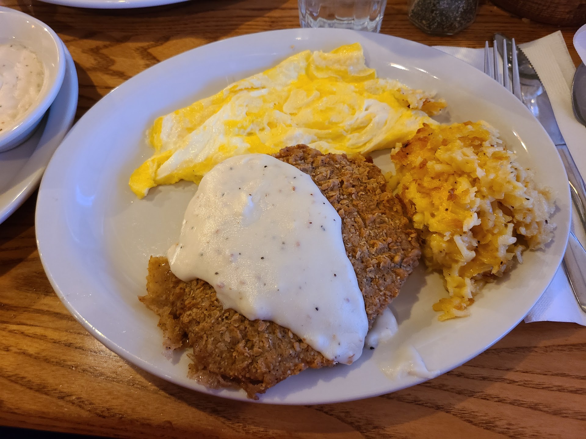Read moreEdoted review 8.5.22 Not the best visit tonight. Here is a list of issues we had: 1) we both ordered breakfast that had biscuits and gravy - we received a basket with 2 Cornbread and 2 biscuits- no gravy. When we asked about the gravy, we were told they had run out of gravy. I had chicken fried steak with a very small dollop of gravy, 2) No one refilled my water during the entire meal - I drink alot of water. 3) brought my husband poached eggs when he ordered over medium, 4) the server dropped the wrong check on our table, then came back and grabbed it off the table and dropped off another check and didn't say anything to us, 5) server only checked on us 1 time right after the food was delivered by another server, 6) we had to ask twice to get silverware. Granted, this was a Friday night, but not all the sections were open and they had plenty of people working. Pretty disappointed during this visit.