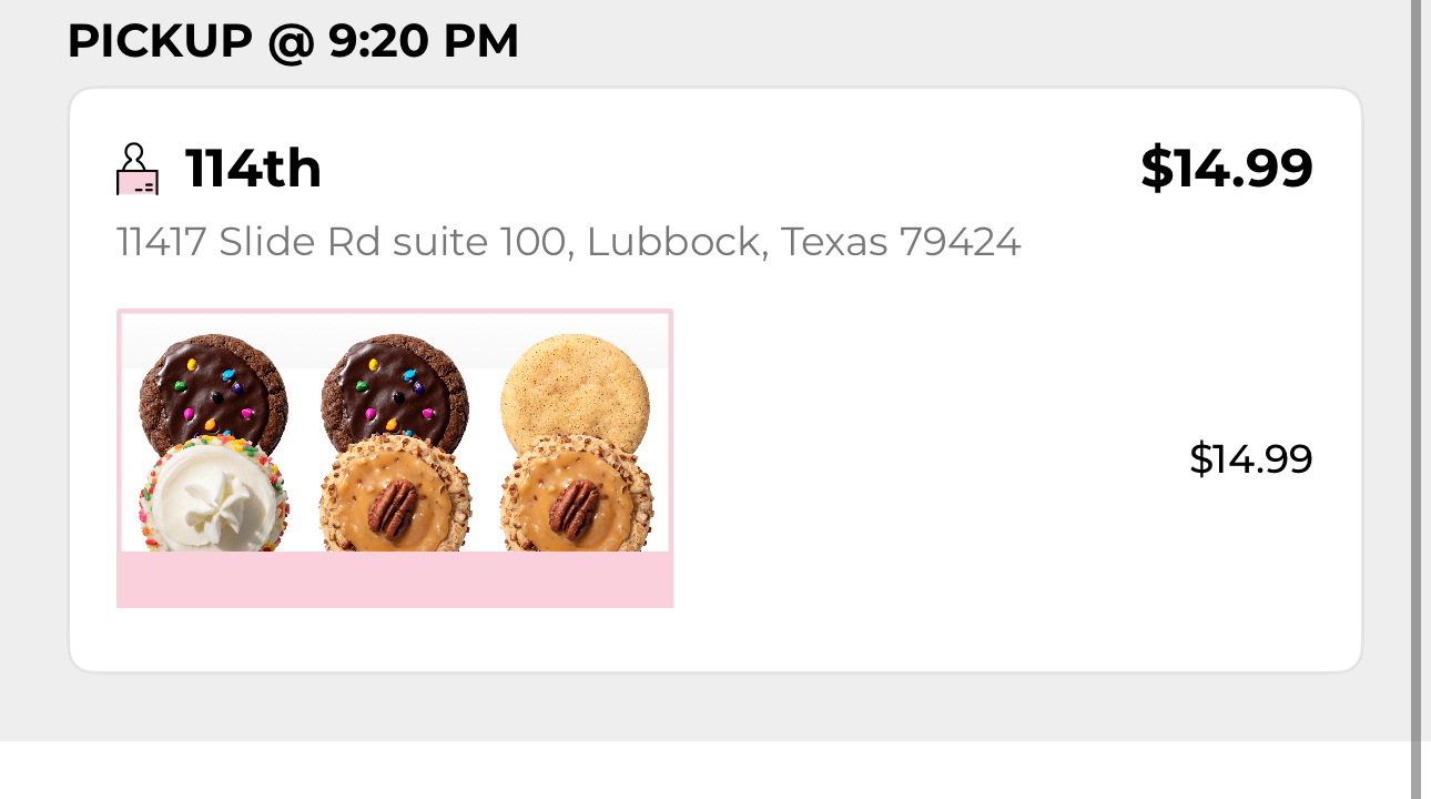 Read moreI put my order in for one cookie at 9:40 a.m. for curbside pickup. The workers wouldn’t bring the order out to me due to me being parked in a spot that wasn’t their curbside.