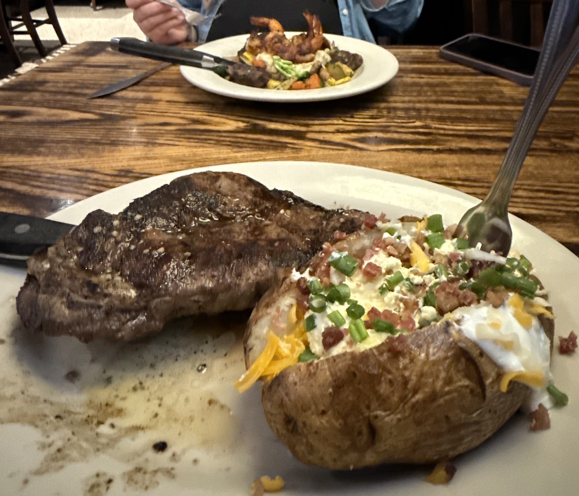 Read moreGave it another try 9-27-2024 Ordered the Chicken Del Mar and Ultimate Mix appetizer. I don't know what people are eating here to keep this place open, but I have not found it. The crab is fake. The menu spells it crab, but it is actually KRAB. It the imitation crab product you get in stores in those sticks. Shame on this place not representing that according to industry standard. The red bell pepper sauce was broken. Pools of grease on each end of the boat. I got my sauce on the side. Parmesan Creamed Spinach was HORRIBLY OVER SALTED! I have nothing against frozen spinach either, but they're not blanching it so it's getting so dark and pasty from holding. Ultimate Mix was supposed to come with Fried Mushrooms as well...we got one cap and a half of a stem. Sad thing is one of the Managers brought it out. Guess we don't expo at this place. The rice pilaf is Uncle Ben's Brand. I'd recognize that grey color from that seasoning packet anywhere. It's a great product, but wasn't handled well. The wild rice bits were undercooked so it was like eating pine needles and there was some dried out clumps. Not to mention they spread it out on the plate so it was lukewarm when I got it. I wish they had a dress code. Our servers was wearing open back, core soled slides. He kept shuffling his weight because his feet were hurting. You wore your slides to work sir! On concrete. Insanity. Then I asked for a manager so I could let them know about the food they sent a girl out with a tight clingy skirt on with a split up to her mid thigh out there. Hair dyed black, dark lipstick. Bright orange top on. The hostesses all had on some variation of a black top and pants, combat boots, loose hair. Watch the rug at the door as you go out. It isn't anchored and it caught the front of my shoe and I almost tripped and fell. If you like your face, step lively, over that rug.