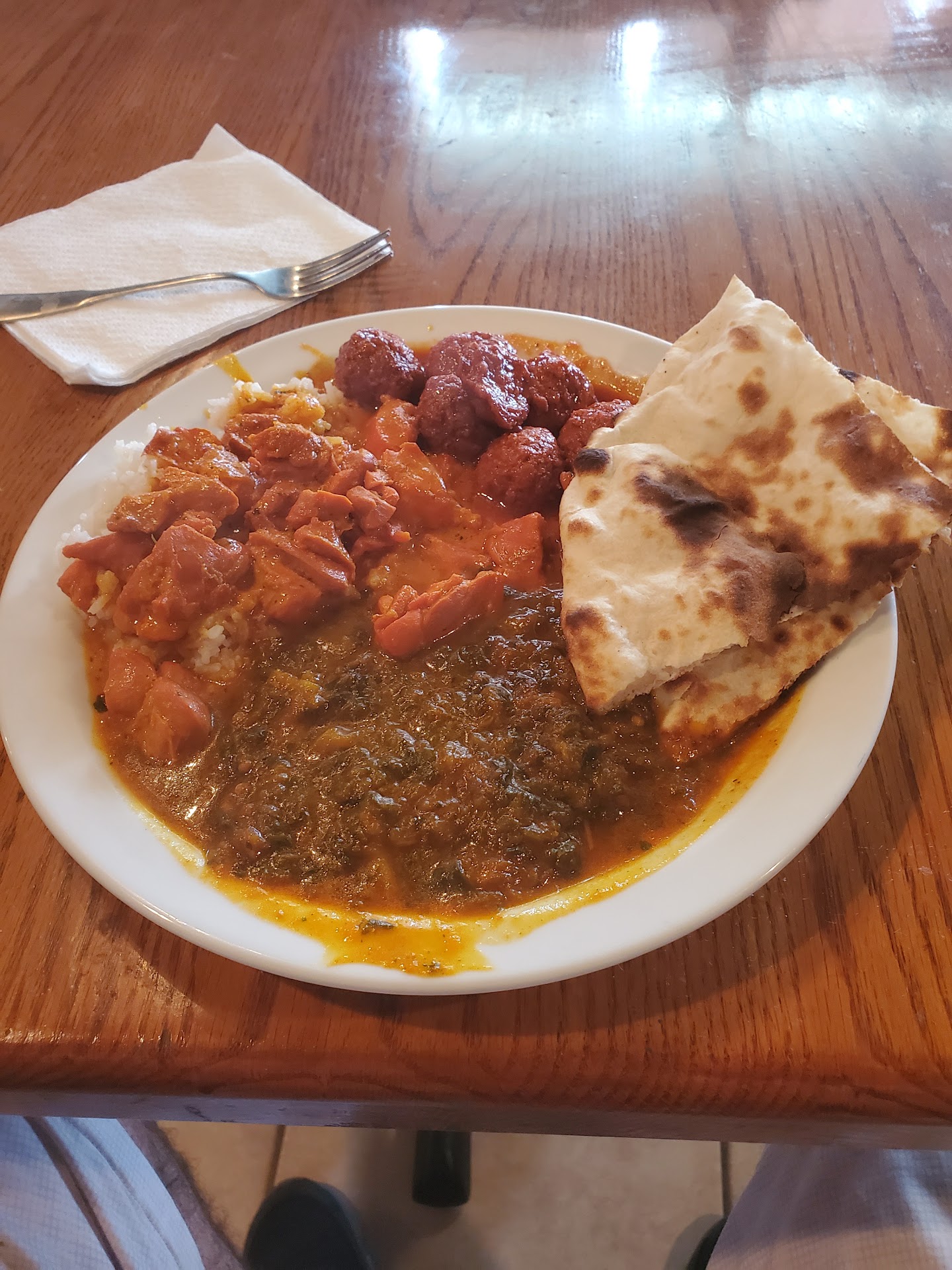 Read moreFirst I want to start by saying that the owner/server/chef here is one of the most polite people I've ever met. A very pleasant man to be around. However, I think that his politeness is influencing a lot of people's reviews when commenting on the quality of the food. This place is kind of a hole in the wall. The interior is very drab and looks like it used to be an office building of some sort, but I find a strange sort of "dive diner" appeal to it, so I rated it very good. The owner once again is very polite, albeit a bit slow, but I forgave the slow pace of, well, everything since he was/is the only person working there. However, I cannot forgive the quality of the food. Every dish that I saw up there that was in some sort of sauce was EXTREMELY watery and very very salty. When I put three items on my plate it all just sort of ran together like three different colors of dye and made a mess. The buffet ran out of naan, so I went back to my table and quietly waited for about 10 minutes then went back up to check. Still no naan. I started eating my food and about the time I was finished the owner came to my table with a plate and gave me some fresh naan. The gesture was appreciated, but the meal was already kind of ruined at this point as I was almost finished and everything was the consistency of chicken noodle soup and I had no bread to go with it. Great guy, cool...