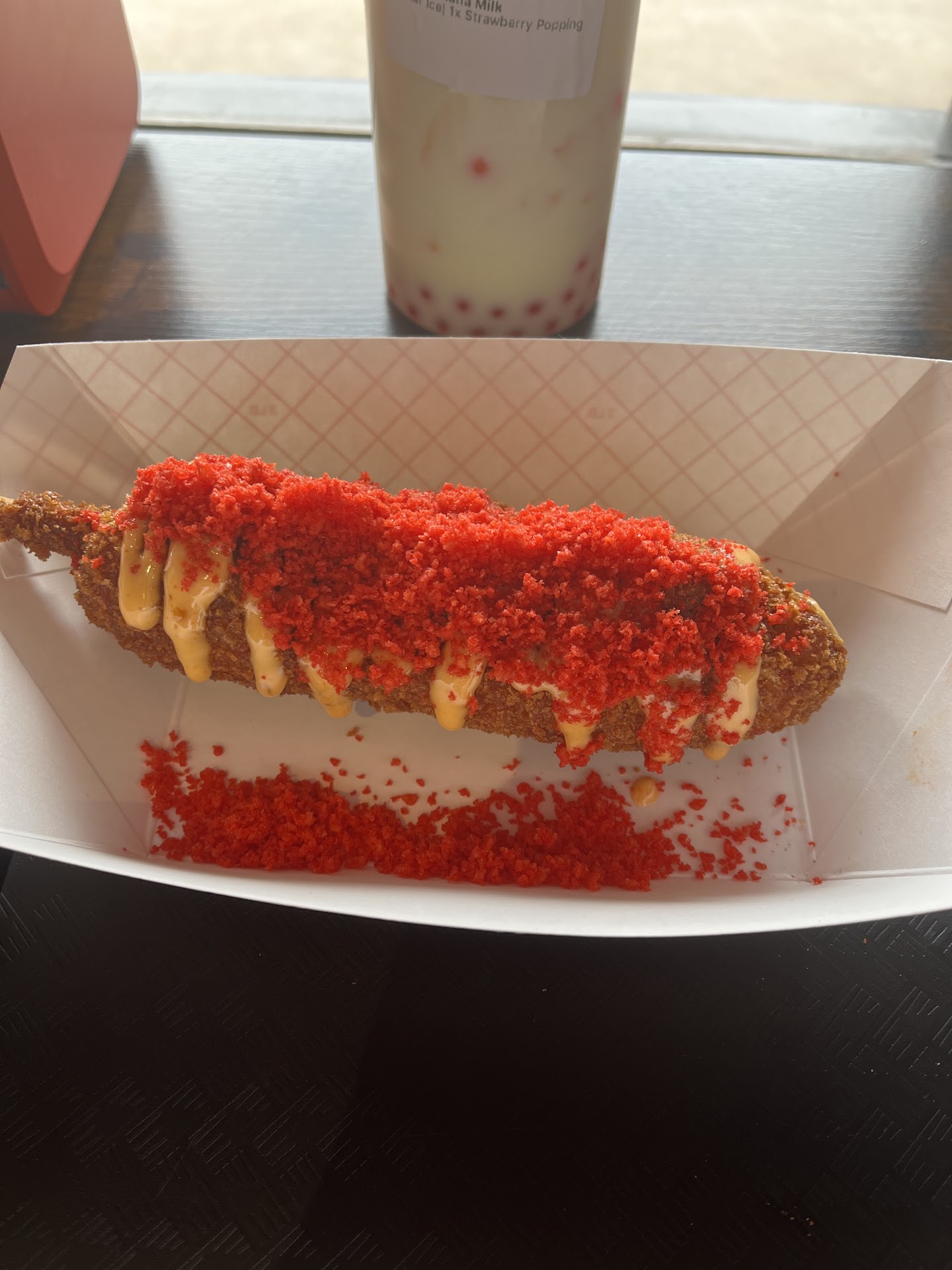 Read moreThe food was meh. Not as good as it’s hyped up to be. Maybe it’s because I went later in the day at 5ish? The food just should have been better and or fresher. The flamin dog was not as andver. It was not entirely covered by the hot Cheeto dust. It was sprinkled on top of one side, and one side only. Leaving the majority of it to fall into the paper boat the dog is served on. The tea was good. Got the strawberry and black pearl. Again, I would say this was not worth the $40 spent here. Especially since they were sold out of ALOT of items at this time of day.