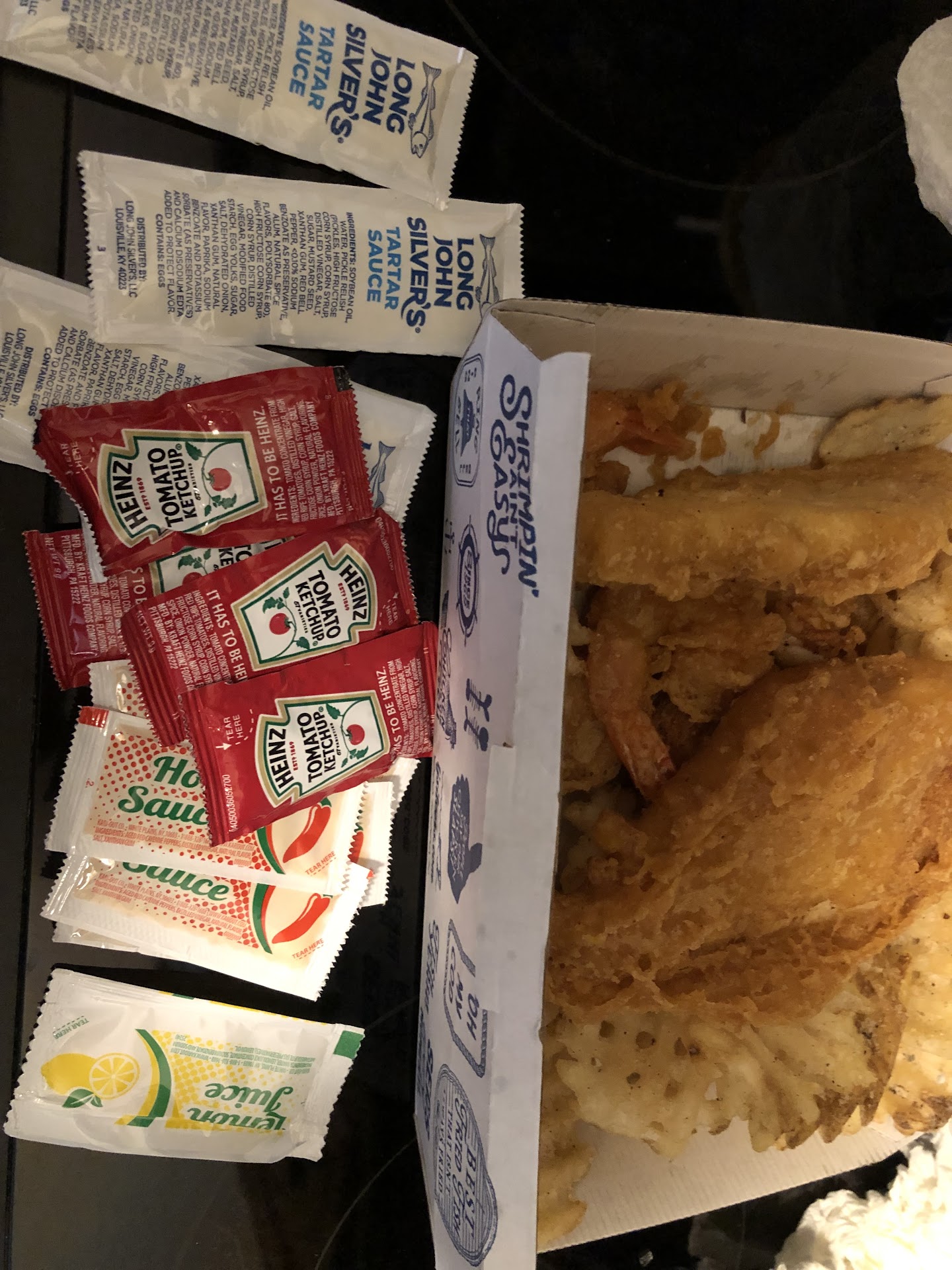 Hoping to get struck with the same luck as that day was just too much to ask for. Today I was there about 8:50p.m. (8:50 was when I first took notice because I had already been waiting) and didn’t get my order until about 9:15p.m. Only to receive burnt fish, burnt fries and burnt shrimp. (Did not notice until I got home.)The excuse for the delay was that the person cooking took too long to drop the fish. Ok, so what is the excuse for the burning of all the meal? The young man had asked if I wanted any sauces and I only requested for vinegar. Only vinegar and even that was too much to ask for. As you can see on the pictures I got everything else except vinegar. Last time I was there I did not notice a tip jar and since I noticed it I tipped $1.04 then an extra dollar when he handed me my order. You might laugh at the amount or even see it as an insult, but when you consider that it’s extra money after the hourly wage it can add up quickly. As someone that worked as a waitress in the past. I won’t be tipping window service again. For the first time in my life I actually wished for robots and buttons to make my meal. Incompetence is not okay! Customers should receive what they ordered in a timely manner and to the best...