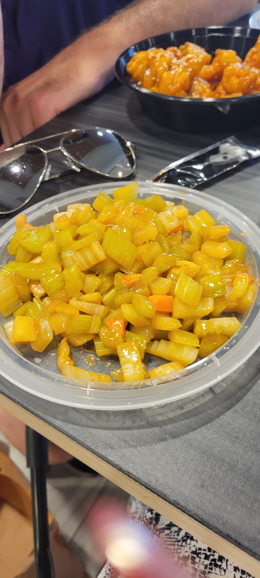NEGATIVES-Moo Goo (2 plates) 1. LITERALLY only 2 slices/, pieces of carrots (not even fresh sliced), 2 slices of celery, 3 snap peas, 3 pieces of cabbage, 6 slices/pieces of water chestnuts & 1 bamboo shoot. TOO MANY MUSHROOMS!! 80% of each bowl was mushroom. Need a balance of the VARIOUS TYPES OF veggies in the dish, not mostly one veggie & then the chicken. Sauce had no flavor & no salt CHICKEN LO MEIN Lo Mein had large pieces of green onion-2 inches in size-should be smaller & less of. Needs more of various veggies. Sauce had no flavor Noodles were over cooked. FRIED RICE Charged EXTRA PER PERSON?? Only difference between it & white rice was the color. No eggs or veggies in the fried rice so why the upcharge? RICE was crunchy. ONE EGG ROLL was included w/lo Mein only? & it was the size of a pinky finger & tasted awful. $4.99 delivery fee+ tip+ food came out to $11.67 PER person & that did not include drinks AND we could not eat the food. We are in hospital, which makes it really hard cuz we wanted some GOOD Chinese food & we splurged here, after reading the reviews.