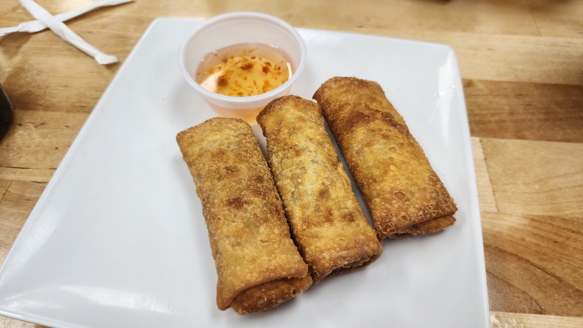 We had their pork satay, beef egg rolls, pad see ew (medium) and pad Thai (hot). Their beef egg rolls didn't short you on the filling, it was a packed roll and there was plenty of visibly moist beef inside. Came out hot with sweet chili dipping sauce, very very good!! The satay came out, also piping hot. The 4 skewers were also very moist, had lovely lemongrass and curry and coriander flavors, and peanut sauce had great flavor, sitting between sweet and smokey just right. Their cucumber salad to the side gave the needed cut.
