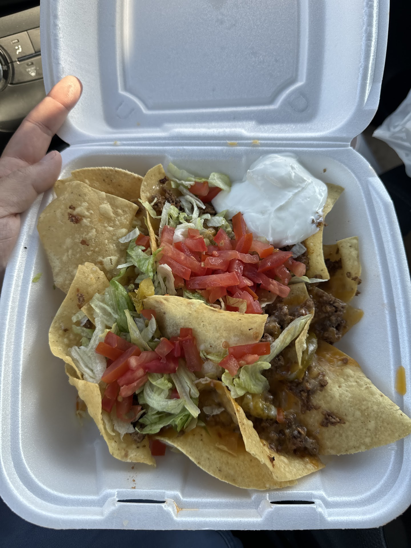 Read moreRead moreOur experience was... Not what we expected. First: the food... I wish I stood up and took it back... I was just ssooo hungry and dealing with my son made me even more Shakey my Life Partner allowed me to go in and get my food without them... So I get my food and literally start scarfing it down 👇. Noticing it was barely not cold. Definitely not hot or even room temperature. I ate it anyway... My Life Partner got the nachos... The pulled pork nachos... Little did we know... It was a mistake; it is now the next day and he has been up since 4:15 am on the toilet... Might even miss work. :(. My son's food was mediocre. They made my LP's food and my sons fries and had it sit while the corn dog was being made which made the nachos cold and my sons fries marinated in its own grease which was gross... His cheese wasn't even melted, last thing STALE BAG OF CHIPS... Service: 🤦♀️ I KNOW that girl had a (ugh why you come in) attitude I wish I knew her name! I WAITED in the front cuz I was starving! I saw my food get ready and SIT in a "heated" window for over 5 minutes! No wonder my food was cold. 🤦♀️ My son went to get ketchup TWICE and both times no one acknowledged him... Atmosphere: it was VERY dirty took ages to find a table. This old guy buser? Maybe watching TV. All them dirty tables and he's watching TV. Everything looked as though it was not well kept... We will definitely not be going again. And I hope others read this comment and take their business...