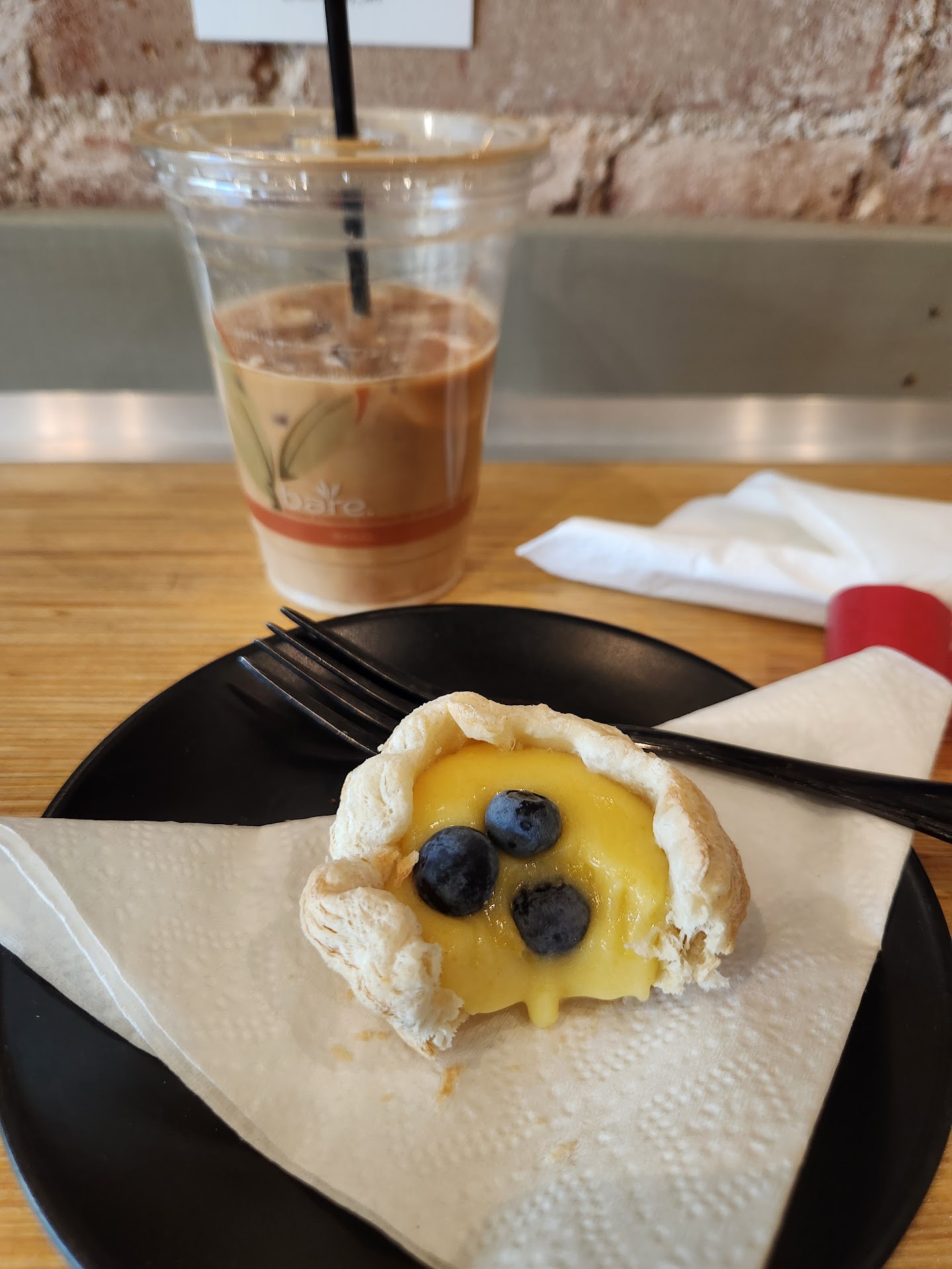 I am a fan of tarts and a fan of this tart. The lemon tart filling was more sweet than lemony with a nice flaky crust that balanced the sweetness wonderfully . The combination of the cool soft filling and bite of the crust made for a satisfying texture and well rounded desert.