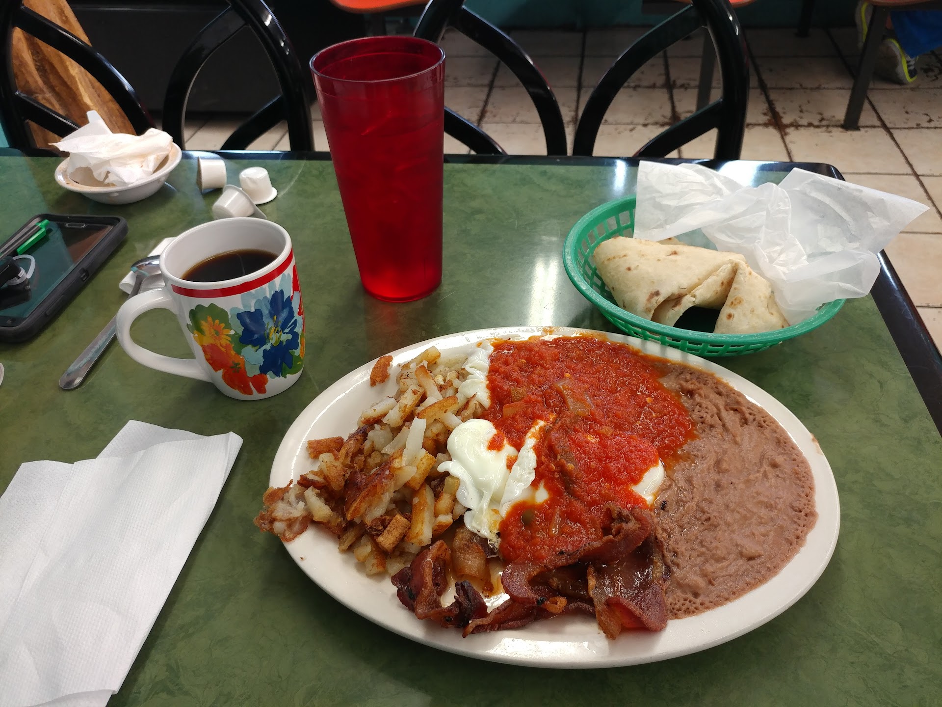 11.5.23- This location just opened and we visited for lunch on Sunday. It was very crowded and we had to wait for about 10 min to get a table. Good size menu for both breakfast and lunch. It took awhile to get our food, but we really enjoyed the chops and salsa - the chips are thick and had been freshly made. Salsa is flavorful without being too hot. Several managers and owner stopped by all tables to thank everyone for coming in and asking about the food. Portions are generous and we saw alot of to go boxes for leftovers, including my husband! We will definately be coming back for more delicious food...