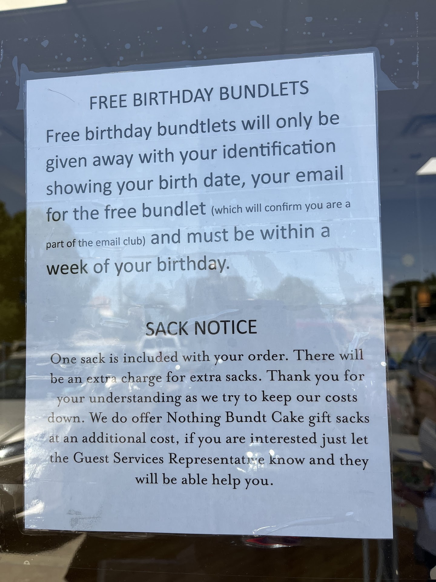 Read moreWe went October 2, 2024 Highly disappointed! The bundtlets are not bundt cakes at all. They are regular cakes, with regular buttercream frosting. The vanilla doesn't even taste like vanilla, the Snickerdoodle tasted like straight cinnamon and the frosting tastes like candle wax. it was not the normal Nothin Bundt Cakes frosting! When I saw the vanilla cakes, I noticed they looked different than what I've seen in other places, but I didn't think anything of it, until I took a bite. It looked different, because it was different. When my sister and niece tasted the vanilla cake and told me it was disgusting, I didn't believe them, because I've had it many many times(from other stores)... But I tasted it and they were right! Idk if this was just a day where they didn't make the bundtlets, actual bundt cakes, or if this is an every day occurrence. Either way, it was a waste of money(We bought 7 bundlets). Now I will have to bring my family some bundtlets from the city I live in, so they can get the real experience of Nothin Bundt Cakes because this was definitely not it. I thought with a franchise, the recipes and things had to stay the same in all stores, but apparently not. Even the little blue bags that they sell for $1, are bags that other Nothin Bundt Cakes use to give you your bundlets in when you purchase them lol. The only reason I didn't give it a 1, is because the place was cute and the...