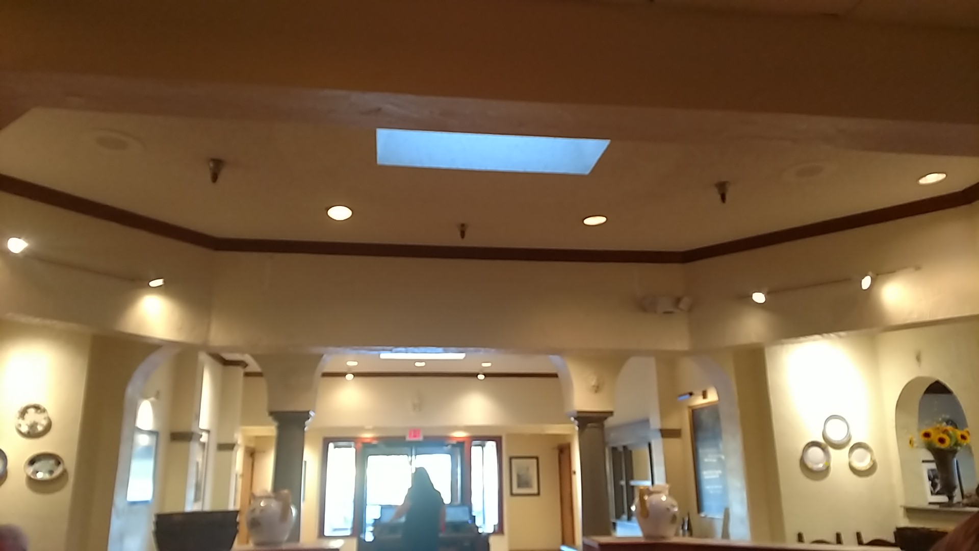 We pulled into the parking lot and found a space to park the truck and went in, it was quite busy and 15 people or so were waiting for a table. We were greeted by the hostess and we told her we would like a quiet table for 2. She said it would be a 20 minute wait but within 8=10 minutes we were called and taken to our table.