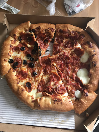 i just wanted my damn pizza and cinnamon rolls . I ordered my pizza at 11:00pm and the estimated time was 11:17pm for it to be ready , but no . I got my pizza at 11:41 bro and keep in mind that it was a personal pizza (4 little slices) and cinnabon mini cinnamon rolls . I was at the drive through waiting over 8 minutes for my pizza that was already made they just needed to put it in a bag with the rest of the stuff. But the employee there was clocking out and she didn't make time to pack my food it was that quick and easy. But the manager oh my goodness, i was about to crash out and she was walking so slow like my time didn't matter I wanted to go home , eat my pizza and relax after a long day at work.