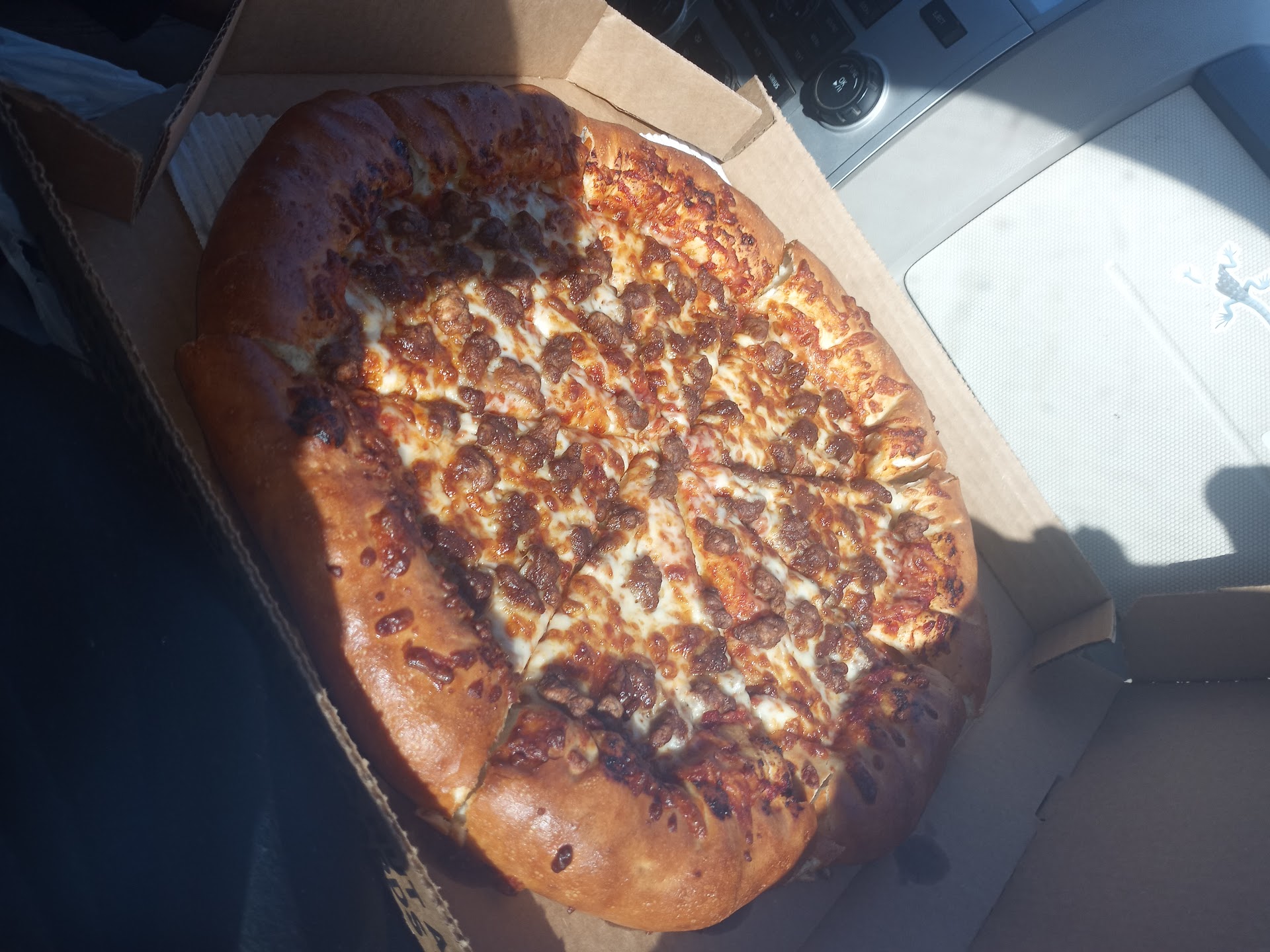 This place is the ONE to go to if you love meaty toppings because they put on a very good amount per pizza! It's almost too much. But if you love lots of cheese and sauce, you have to ask for extra. Normally I want extra cheese, but they put on just enough to please me normally. Their place is quite clean from what I could see from their big drive thru window; I chose pickup though they offer contactless curbside service, too. They were friendly and have gotten my order right every time I get pizza there. They don't offer the brownie dessert so if you want sweets you'll need to make due with the big chocolate chip cookie. I ordered online and drove off to pickup not getting the message that there was some kind of problem with my order, as I don't use my phone while driving. Once I arrived my order had been filled anyway. I had opted to pay on pickup, so that might have been the problem; I simply don't like giving visa numbers on phone if I can avoid it. I'm hoping they stay afloat in these turbulent days because they are so close to my house I love the convenience of having good place right there. I Love this place, really,...