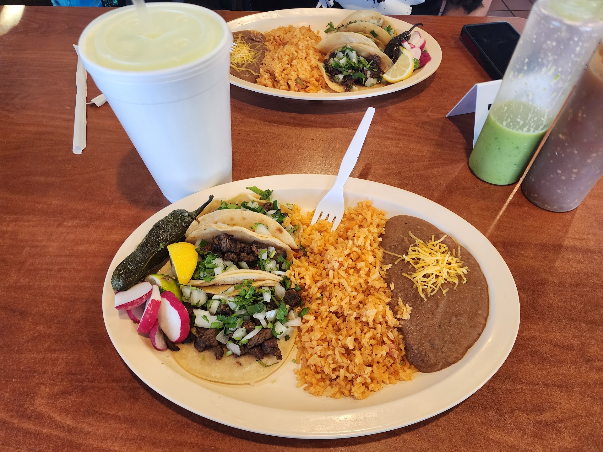 The place was simple, and the service was fast friendly and helpful as it was the first time eating here. Ordered the taco plate asada with everything on them, and it comes with beans and rice. Meat was seasoned great, and it cooked just right. To drink order a Fresca (it will be worth it). There are lots of options on Mexican food an its...
