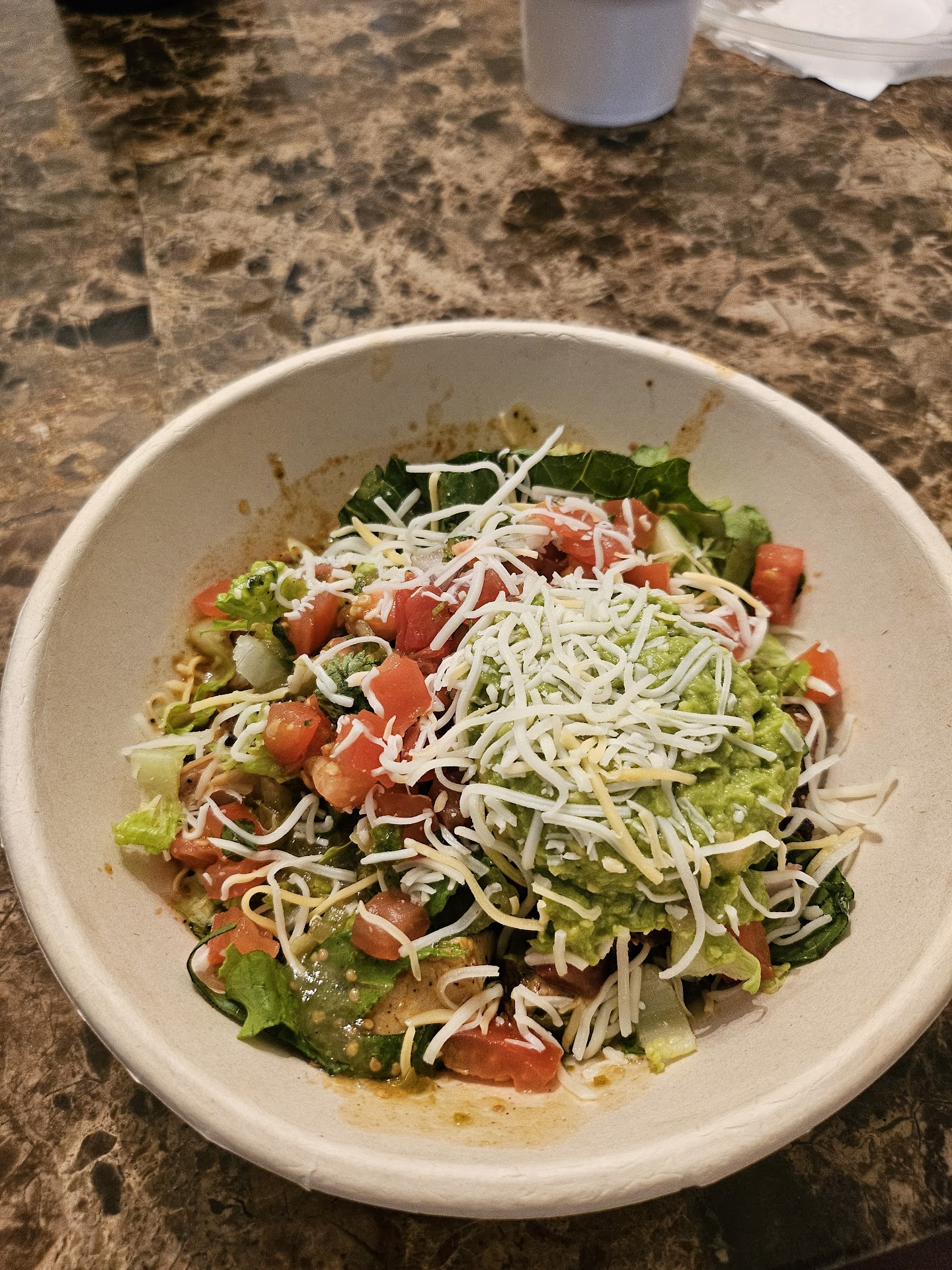 I dined in at this location on 124th & Indiana during a Tuesday evening (about 7:30 p.m. to be exact) we had a wonderful dining experience here. The staff was phenomenal!! We received outstanding service with a smile, and all the staff members were very personable/helpful/polite; the type of service you would normally receive at an upscale restaurant from a waiter/waitress working for a tip (this entire evening staff sure deserved a tip that's for sure.) We had a build your own bowl, a quesadilla, and a brownie all of which were very tasty and fresh!! Upon finishing our meal we noticed the nice young man who checked us out went to wipe down the drink machine, made sure the lobby was clean, and cleaned the tables that needed to be cleaned. Overall this was one of the best dining experiences we've had in a long time here in Lubbock for a quick bite. It's refreshing to see people enjoy their job and not have a " I'm just here for a paycheck" type of attitude. Keep up the fantastic job here, and we will definitely keep...