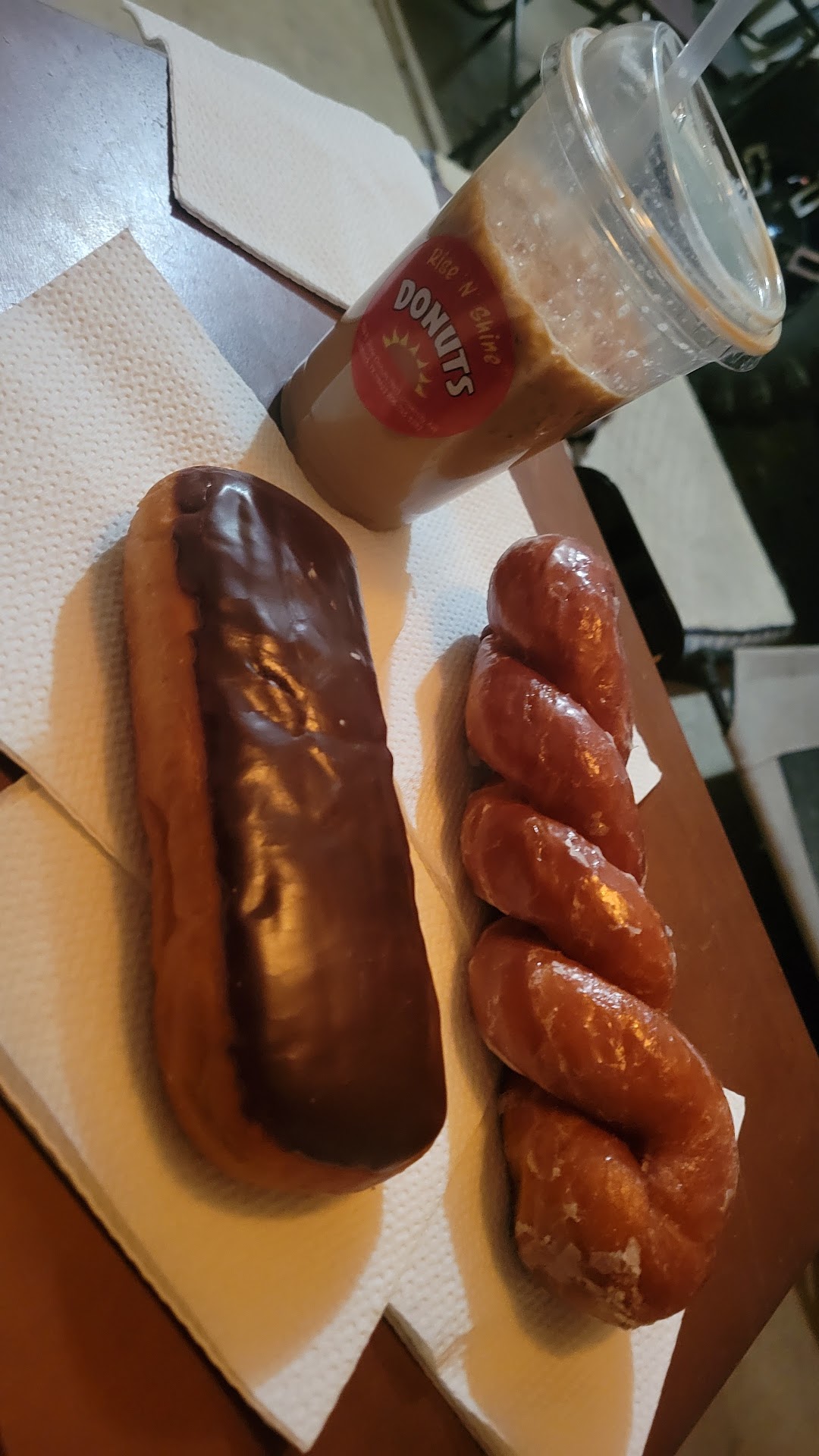 The walk-in and drive-through is always busy at Rise-and-Shine which is a very good sign. They are quick at the counter so it's possible to do a donut run before work but don't expect to be first in line :-)