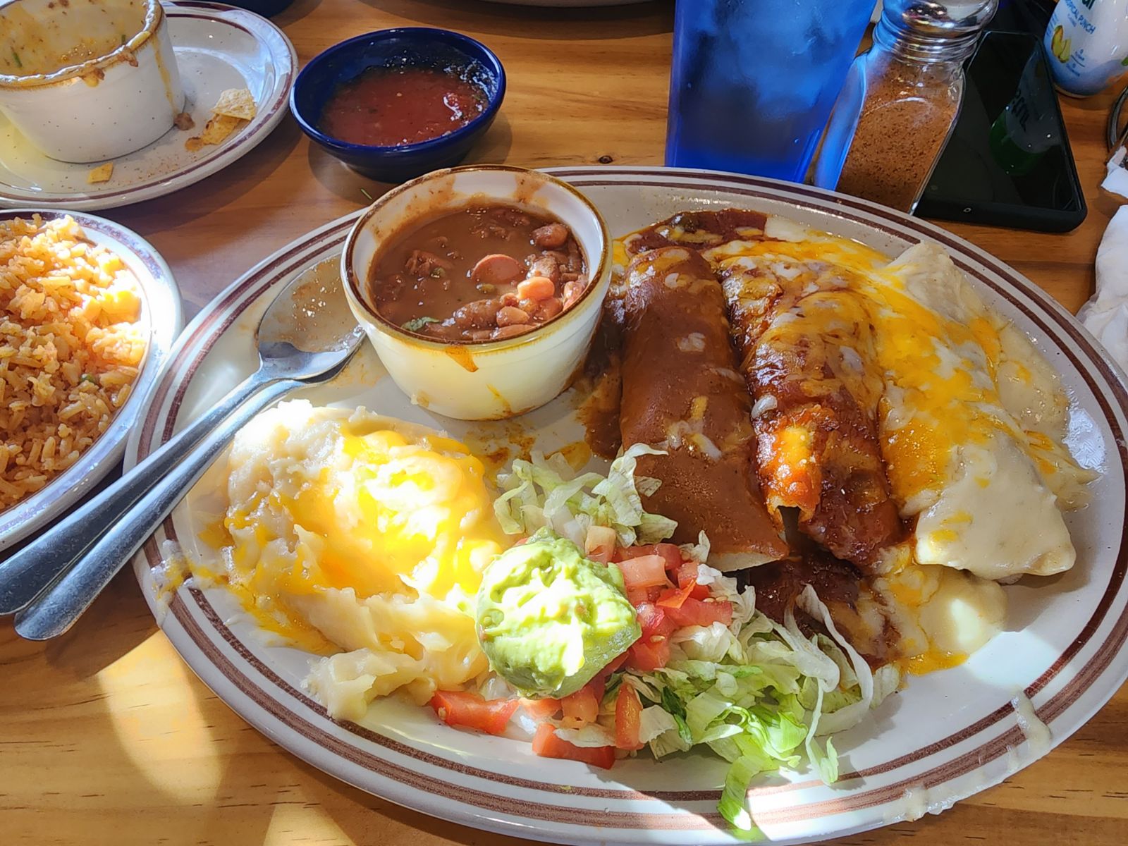 Read moreThis review is a to be continue one, I came here and got the menudo ( which by the way was very delicious 😋, also got rid of my cold symptoms 😁) back in October and just never had a chance till now to get back to it. But now we here and I got two of the bartenders favorite drinks (which she specified were good... no lie they were.) Deep eddy Chilton for $4.50. Was a real refreshing drink. I had the lemon and the cucumber, my favorite has been the Lemon but to each its own taste buds. Also it came with chips and salsa ( salsa very delicious as well) and I had the creamy chicken chimichanga for dinner pretty meaty, needed some flavor in the meat. Charro bean were good rice was flavorful. Overall it was a good experience. Thanks to the bartender Delilah who suggested the drinks shouts out to her and her buzzing drinks 🍸 😄. By the way, on Tuesdays the have tacos for a dollar so Overall this place is really affordable. Might not be the best restaurant in Lubbock but definitely friendly an the best filling 😌, get your bang...