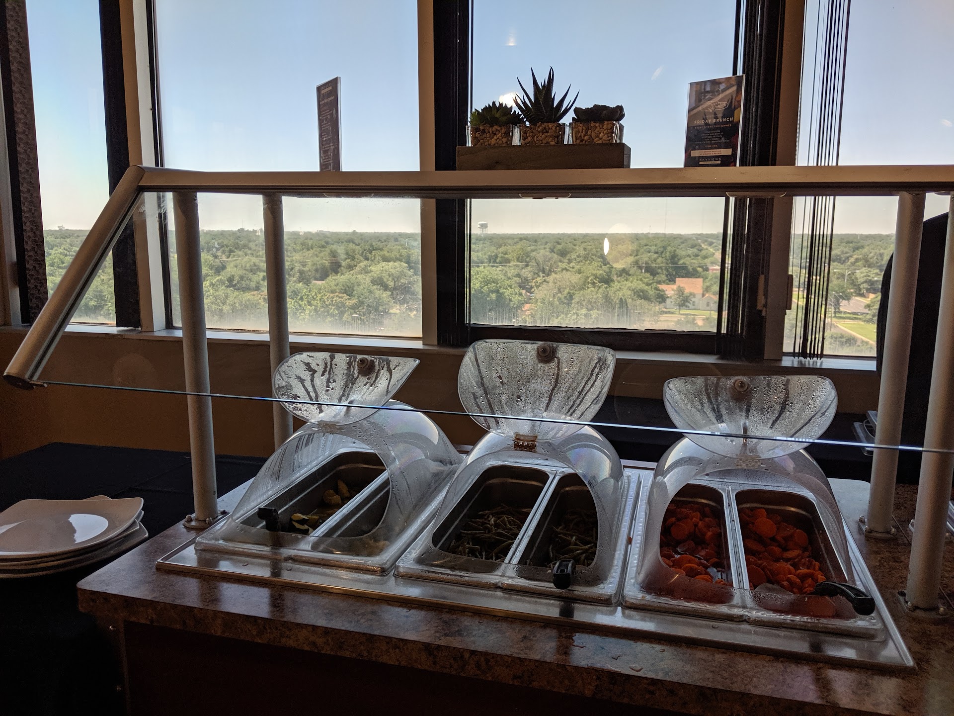 Tried their buffet lunch today. Great location on the 9th floor over looking some of the Texas Tech campus. Background, this is a training restaurant for the Texas Tech . Very reasonabling priced, great service and overall the food is good. Nice salad and baked potato bar. Four different main courses to choose from. Okay, here we go... I had the lasagna with sausage and a side of pasta. The highlight for me was the dessert selection. I had cherry cobbler, poppy seed cake with a lemon chiffon icing that was Great! Oh, also had a bite of the pecan pie. Washed it all down with a good cup of coffee. Tipping the wait staff goes into supporting the program. So parents when u visit your kids, stop and have lunch/dinner at Sky view . You will not be...