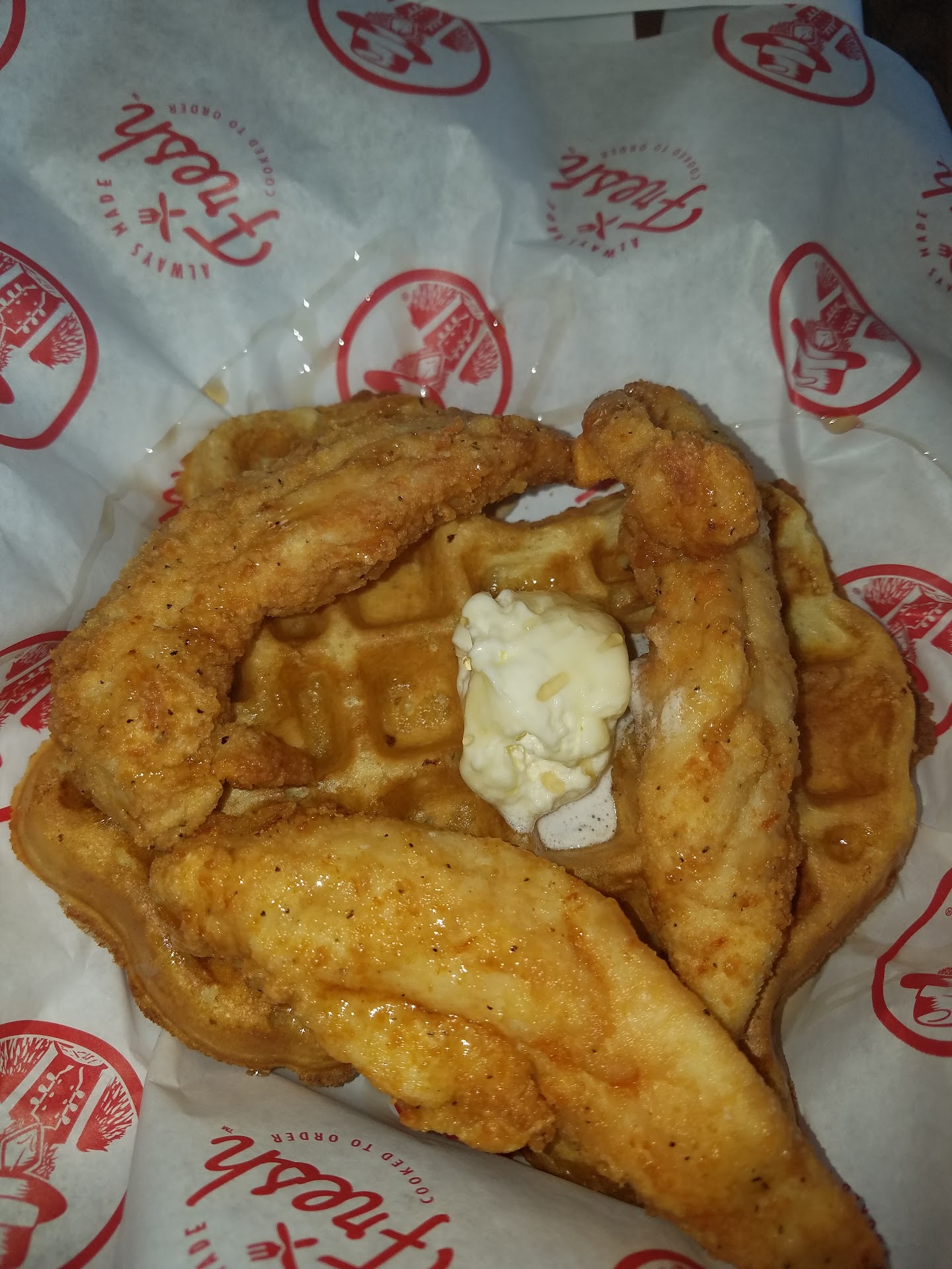 Read moreWELL, for starters there were flies in my chicken and waffles... yup, FLIES. Not just one, but TWO! My husband was already half way through his food and I get to mine... when I open the container there is one on the edge trying to crawl away for dear life.. so I tried shooing it away thinking "maybe the fly was in the house" IT WASNT MOVING. I had to PUSH it off ! And THEN another one came out from under the waffle! DISGUSTING! I ran and screamed and my husband asked what was wrong and I told him and he immediately pushed his food away, of course. My two year old was eating too so I went and grabbed hers and put it all in the bag. My husband called them and though the manager was super nice, her general manager said they would only give us money for the "waffle itself" uhmmm, do you not realize how gross that is?! That made us not want to eat our whole order! We literally returned the whole thing! They wouldn't give us a refund but gave us a gift card which is no good because we are NEVER eating...
