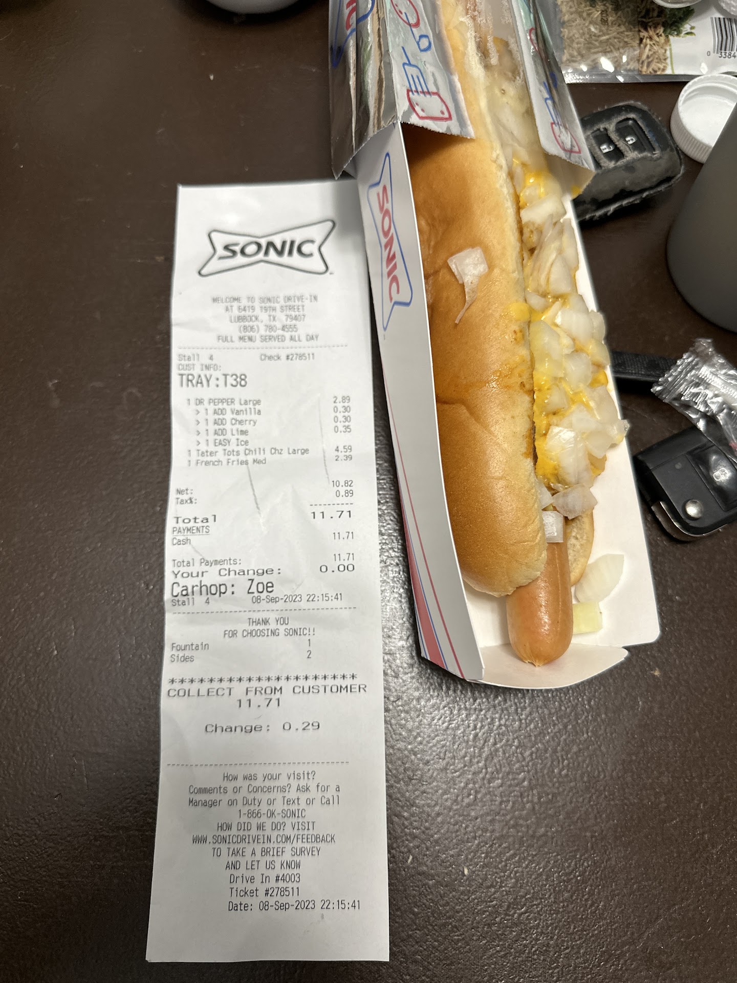 Ā Ā Ā Read moreI probably would have given a five stars I quit going to the one on North University closest to my house cuz they no longer cook the food good anymore I guess today maybe I had it coming out it's my fault but.. I pull up the stalk number two. I pushed the button and asked what stall I'm at the lady replied do you mean the store that you're parked in.... Which I thought was a very odd question to ask so I said and maybe I said it with attitude I can't be in two stalls at the same time in my head that seems to be a very weird question to ask someone..... And I guess maybe the retaliated because the two burritos I bought were heavily heavily salted to the point I couldn't even eat either one of them now was it a pure coincidence or was it retaliation from the cook from the way I spoke to that girl that answered I don't know but when I asked him and told him about the problem they did corrected and gave me two other burritos without any added salt or pepper which is something I've never seen Sonic do and I buy burritos a lot might have been a bad experience they corrected it so it's a four-star a game of Sonic is reading this review I'm sorry for having a rude attitude about that question but at the same time they really shouldn't be retaliation on somebody's food...