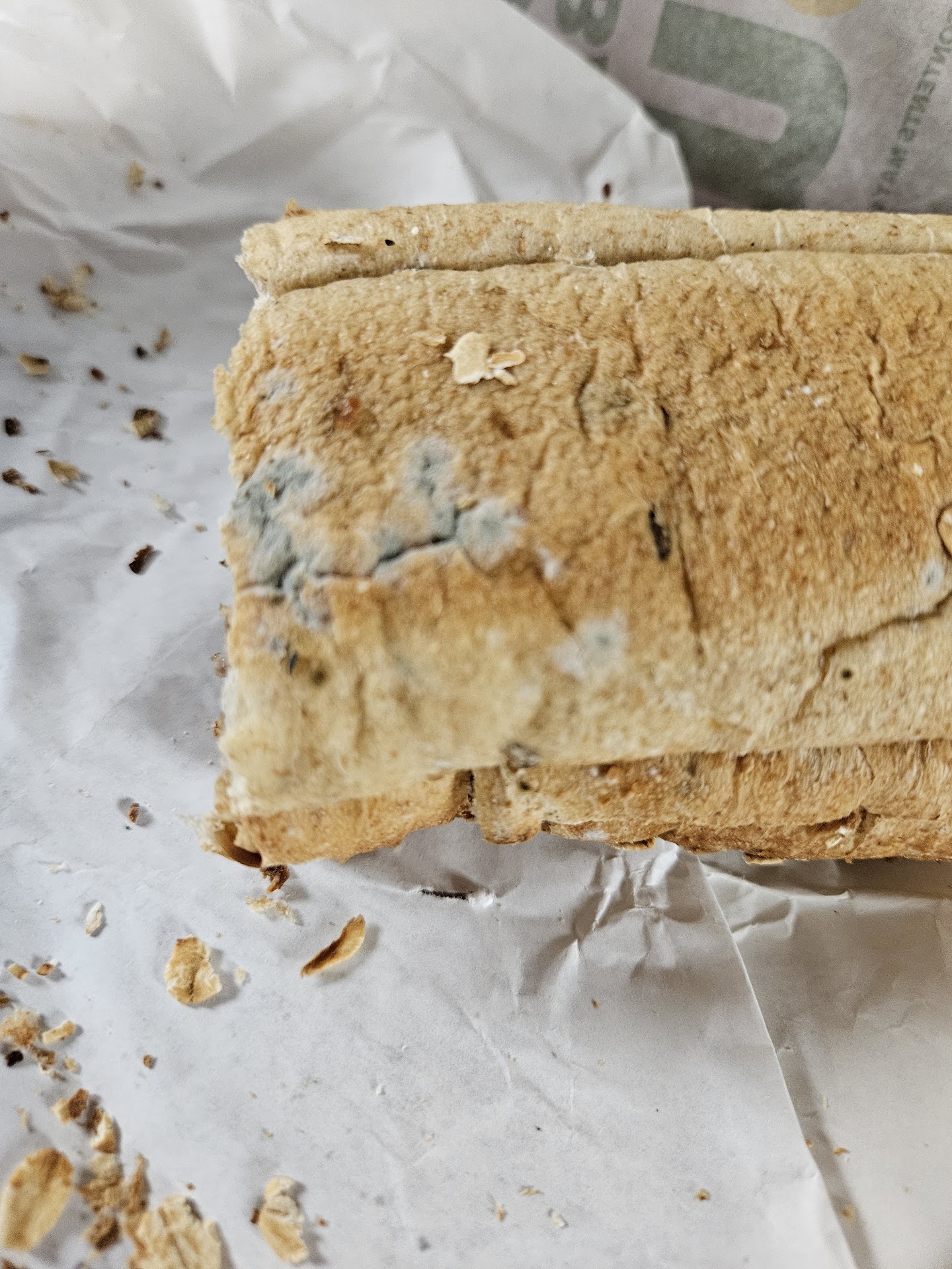 A few hours later, when I was able to leave work and go back over to the store, I was offered an appology and if I would like replacement food. I said no, but I at least wanted a refund. The refund was given, and the area supervisor said, "Sorry, I am not sure how that happened." I stated, I hope that I don't get sick from consuming this moldy bread."