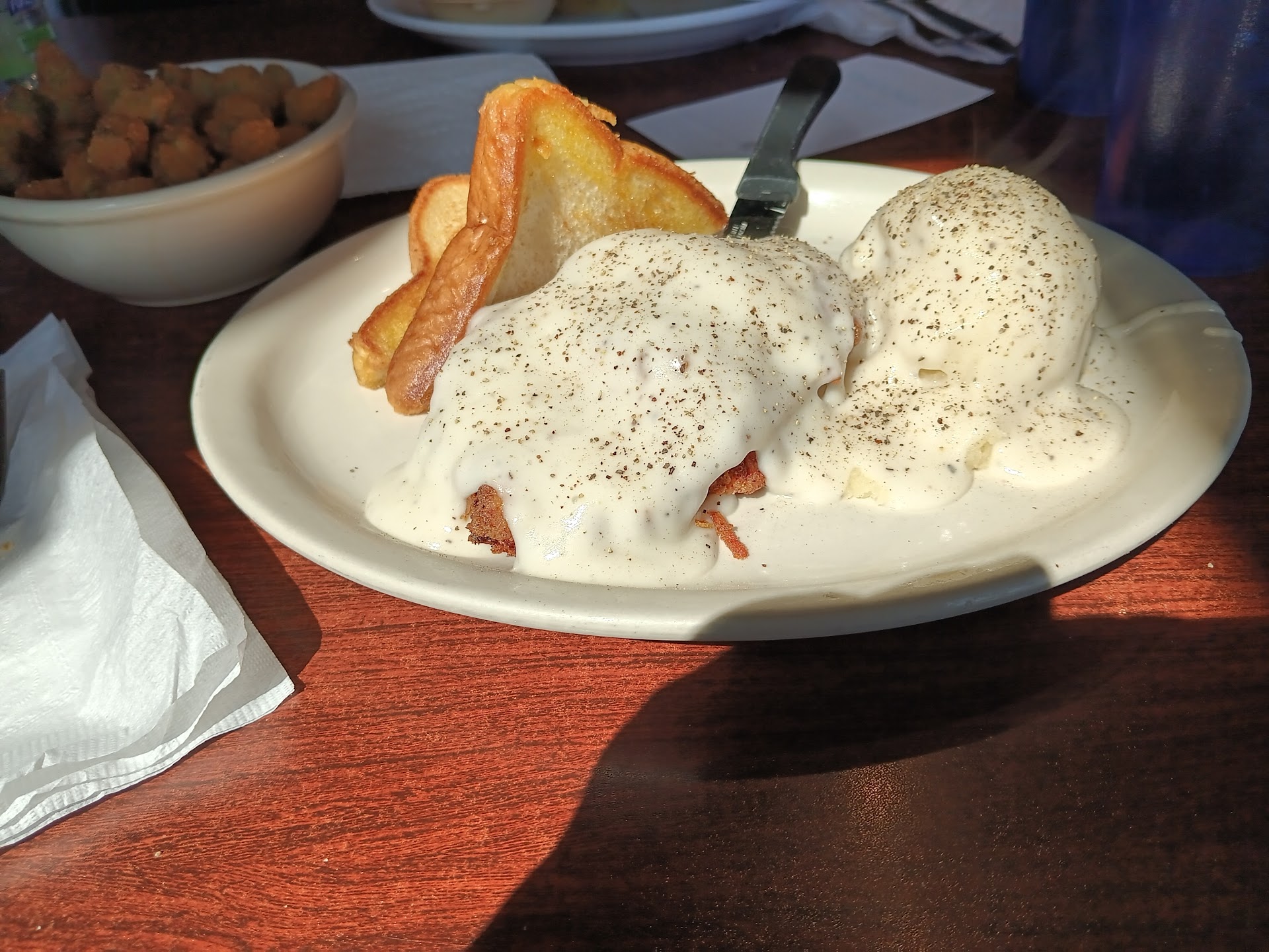 I had the CFS/gravy with scrambled eggs, hash browns, and wheat toast. Everything was well prepared and tasted great! Good, filling, basic breakfast.