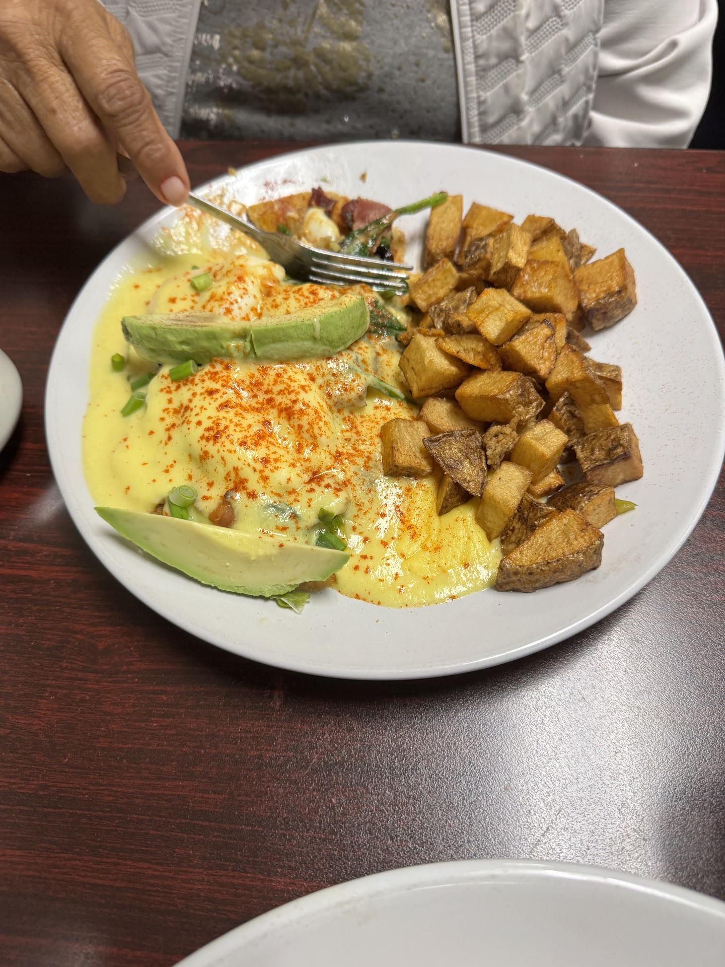 Read moreFirst off the food was good but the rating I give is an over all rating. Today we got a southern and south western Benedict. The server seemed over whelmed, we get coffee and water and that takes 20 minutes ( she states they were eating off clean coffee mugs, my thought use a togo cup and explain mugs are being cleaned no big deal). This restaurant should let folks know this stuff is from scratch and it takes a minute. 30 minutes for breakfast was ok but you don’t see anything or no one explains these items are not premade. The cost with tip 18 percent was 32 bucks and some change. I think this restaurant would do better of communicating how they make what they make. I’m not in a rush but if you wait 30 minutes and you don’t know how they are making your food would make think these people are slow .. when I ate the chicken with my southern Benedict it was great. I just wouldn’t take a large group there at all because this restaurant from my view was struggling with simple things. The jelly’s in the table are great and the food is magnificent but the service and over appearance of the place is lack luster .. appearance can be objective but you look at the outside and walk in and it’s like well my barn has more character. If the staff was more welcoming maybe that wouldn’t be noticeable. I hope I can edit this review in time to 4 or 5 stars because the food was hot .. my hash browns on point a mixture of crispy and savory ( I have been to thousands of diners and these hash browns are top 10). I think with some consistency and team work this place could be a solid 5 star but today that was not the case .. simple things just have one set of doors unlocked and guide traffic to your hosts .....