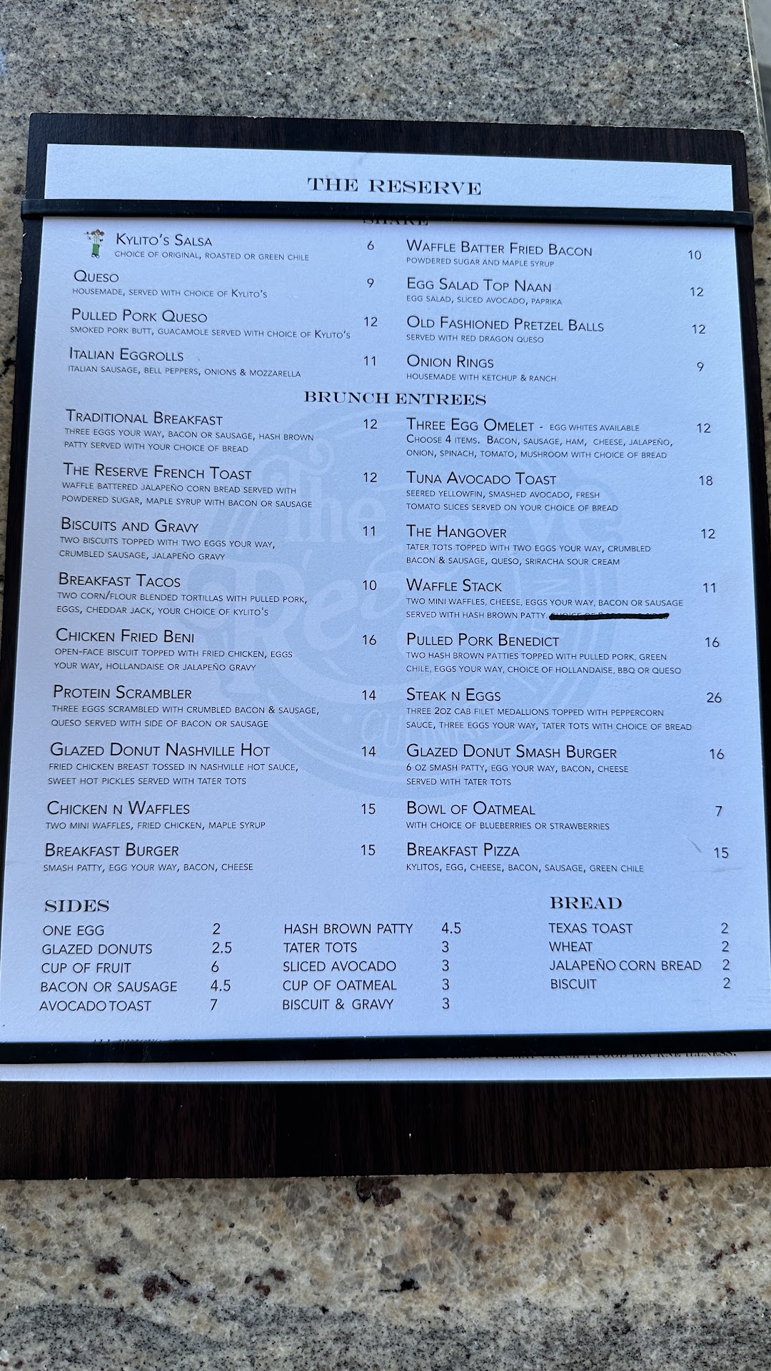 Read moreWe got the waffle batter bacon as an appetizer, the chicken fried beni, and the glazed donut nashville hot. I actually ordered the donut smash burger but the waitress misheard me and I got the glazed donut Nashville hot and it was a happy accident. The fried bacon appetizer seemed a little overcooked and probably would have been great if it wasn’t. The glazed donut Nashville hot was awesome except for the subpar tater tots. Definitely a memorable dish though! The chicken fried Beni was good overall but the eggs were cold and unseasoned. The biscuit was the stand out and the chicken was tasty! So many other interesting things on the menu that we’d like to try, for sure!