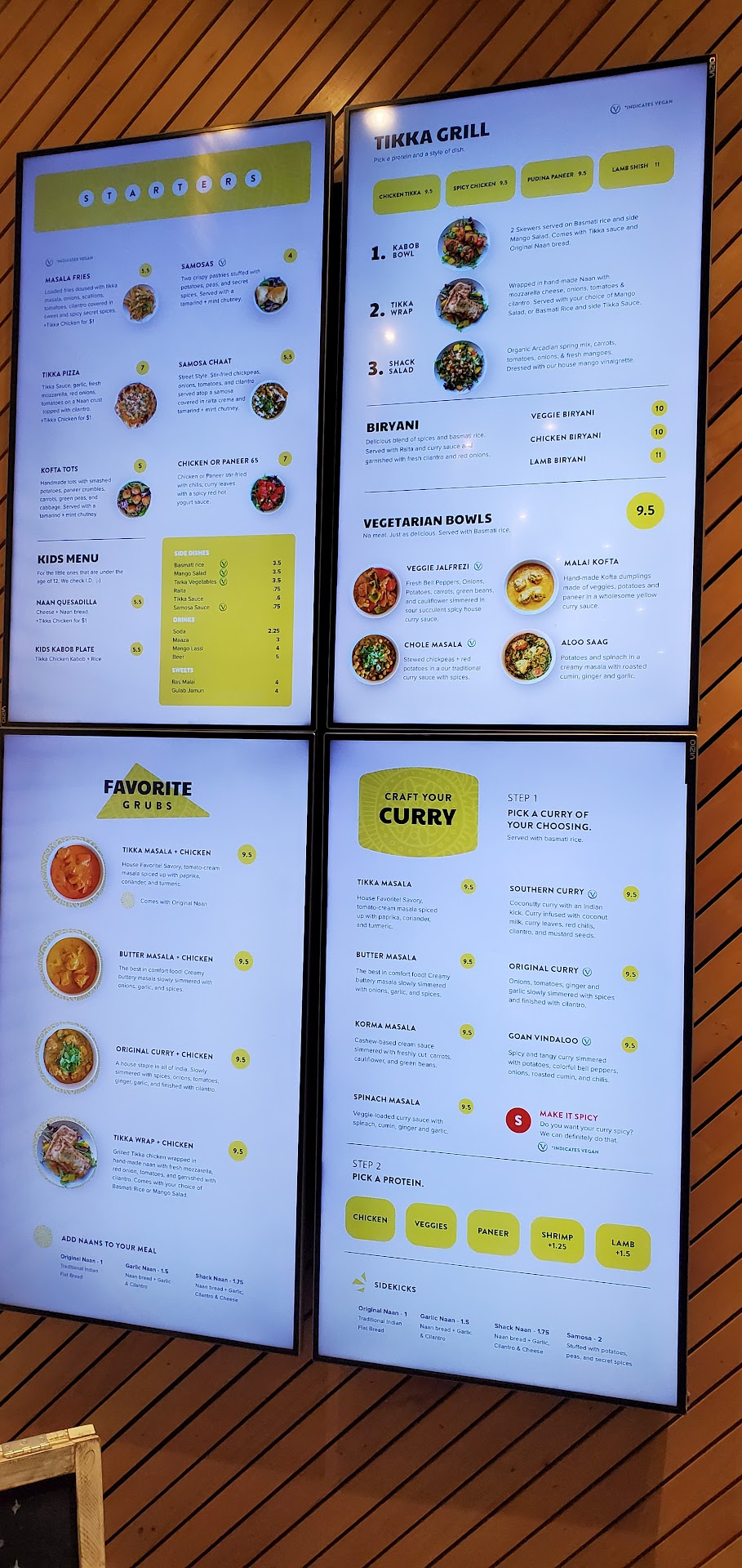 Read moreMy wife and I love Indian and food and have eaten it throughout the country and internationally. This was our 1st experience at a Tikka shack and we did take out as we drove into town later in the evening. The website app to order was easy and worked well and let us schedule our order pickup time easily. We had the southern curry, the lamb korma hot, and the saag. Our boys had the Naan pizza and the kids kabob and the mango and strawberry lasi. The restaurant was modern, clean, and new. The staff were polite and took care of our order and were accurate. The restaurant was nice but defiantly lacks the small family feel of most Indian food restaurants.