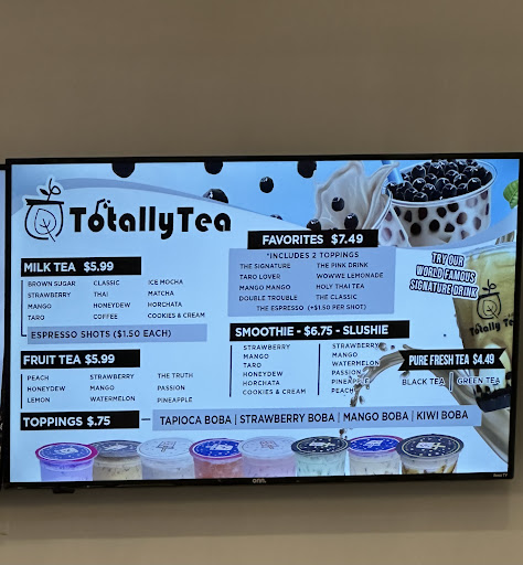 I went to totally tea this afternoon and was not happy with my experience. From the prices that are displayed at this establishment, I was expecting to pay approximately $6.75- $7.50 but ended up paying $9.66 for one drink. Their displays/advertising states that one brown sugar milk tea ( the drink I ordered ), costs $5.99, with the Tapioca Boba topping costing $.75 extra. On my receipt, instead of the $5.99, I was charged $7.49 for the milk tea and was charged not $.75 but an additional $1.50 for the tapioca Boba topping. The tax came out to $.67. Also, my receipt is only half of a receipt due to the employee at the register stating that the printer was messed up and only printing half the receipt. When the concern of the price difference was brought up to the employees, they simply stated that the added cost was the tax and just how it comes up when entered on the register.. I left it at that. I understand that inflation has caused prices to go up, but I definitely will be considering filing a complaint with the Better Business Bureau as I believe these employees could possibly be up charging the customers and pocketing the extra money as tips. If the pricing on the drinks is truly higher, then this is currently false advertising, and it needs to be corrected so people are aware and can be in expectation of what they will be charged.